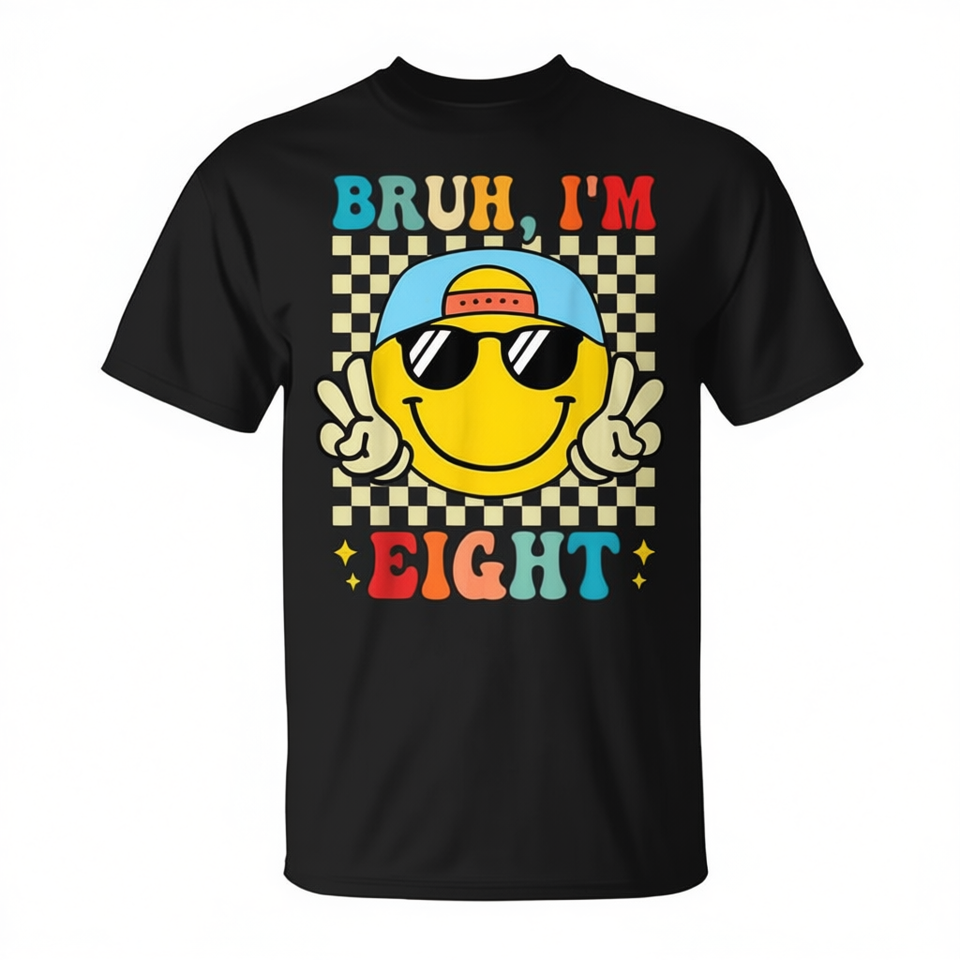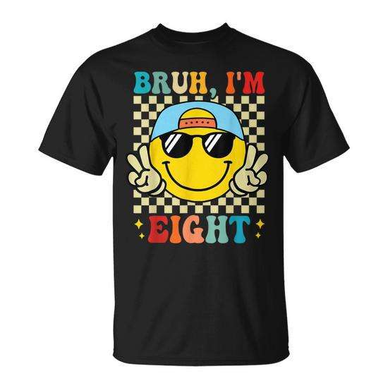 Maglietta a maniche corte per festa retrò Groovy per il 8° compleanno, stampa digitale con scollo rotondo unisex per bambini