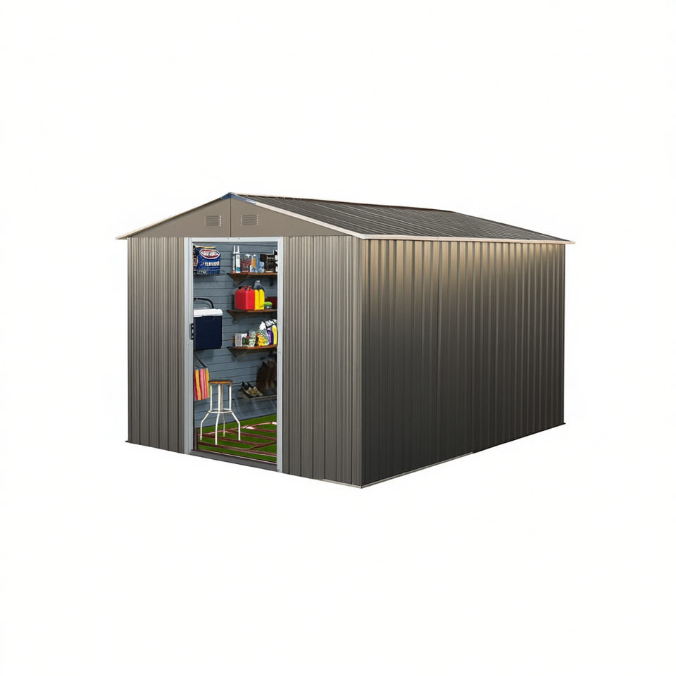 Casetta da Giardino in Metallo Grigio 8x10ft, Resistente alle Intemperie, per Uso Domestico o in Giardino