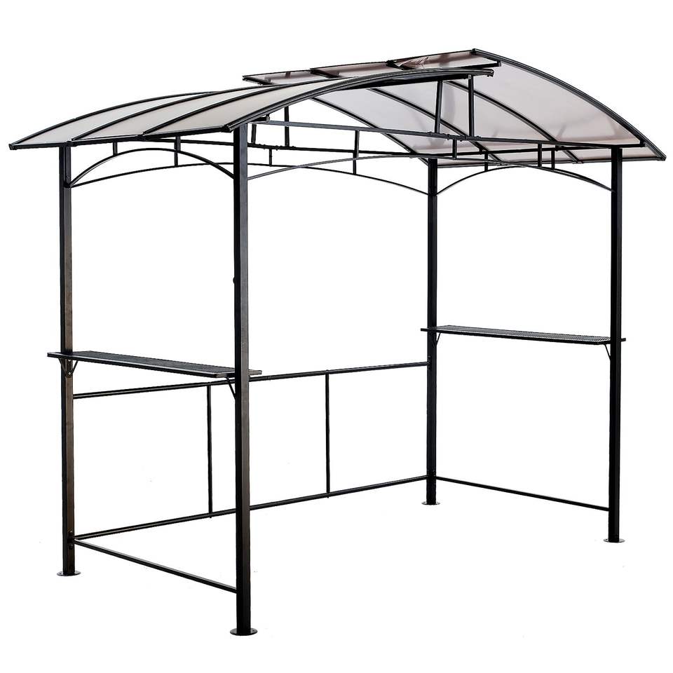 8 x5ft Patio esterno parasole griglia Gazebo con Hardtop in acciaio e ripiani laterali per barbecue