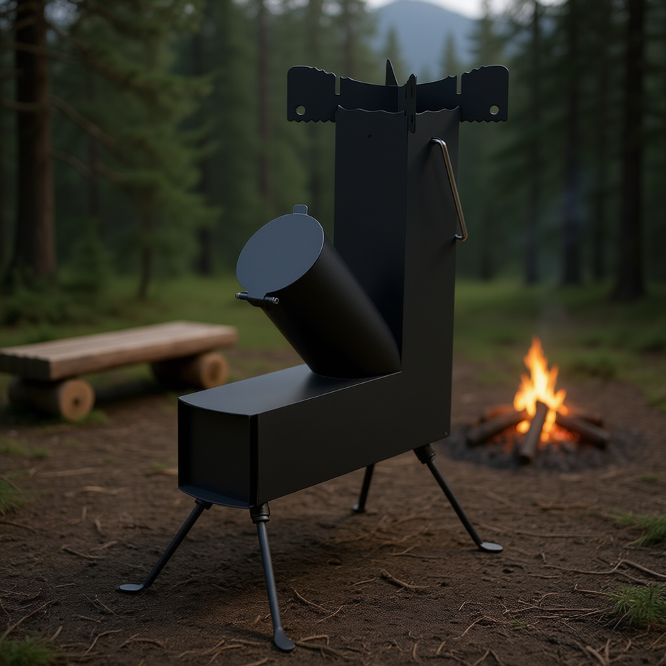 Outdoor Metal Rocket Stove 9.44 in D X 17 in W X 22 in H One Piece Design Manual Firewood Burning for Camping All Seasons