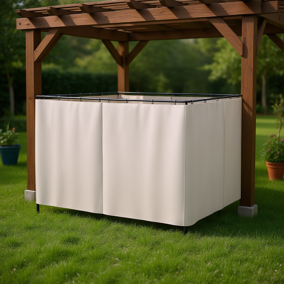 Universal Beige Gazebo Sidewall Set 4 Panels Hooks C Rings For Pergolas Outdoor Furniture
