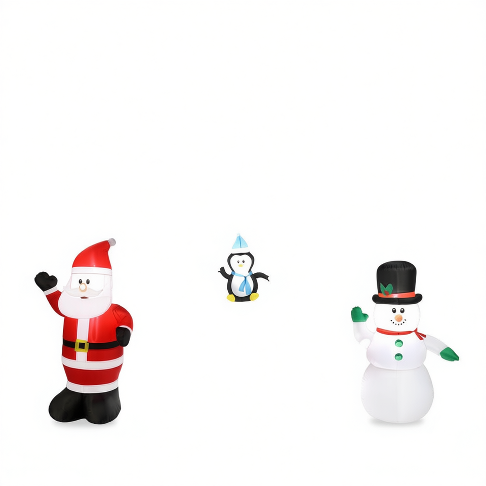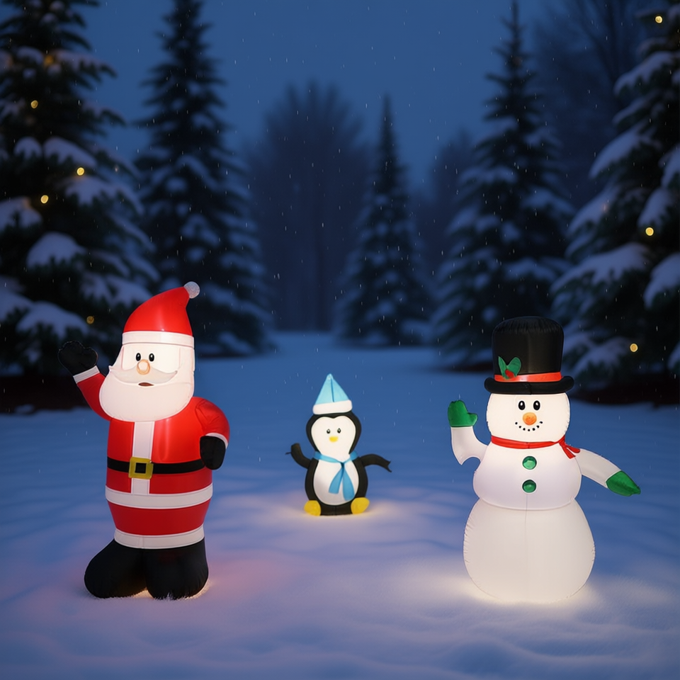 Decorazioni Natalizie Gonfiabili da Giardino: Babbo Natale, Pupazzo di Neve, Pinguino, Luci Festive da Esterno, Set Divertente Gonfiabile in PVC da 3m