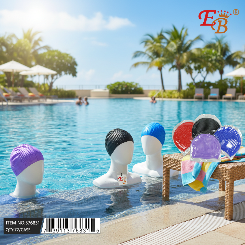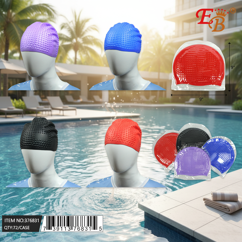 Cuffia da Nuoto per Adulti da 9 Pollici, Elegante e Resistente, Accessorio da Bagno Realizzato in Silicone, Nylon e Spandex, 72 Pezzi/Scatola, Modello 376831