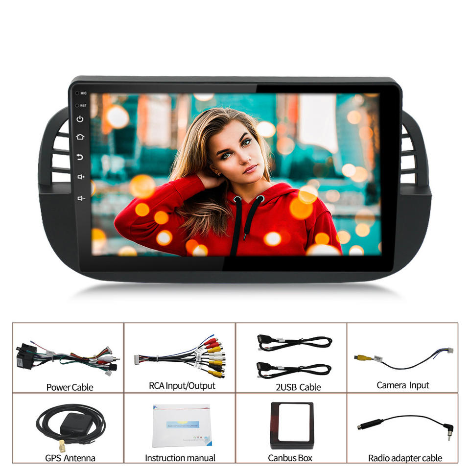 Autoradio Stereo Android 14 da 9" con Carplay Automatico Lettore Video Multimediale Integrato per Fiat 500 2007 - 2015 con 4G LTE GPS Wifi DSP QLED