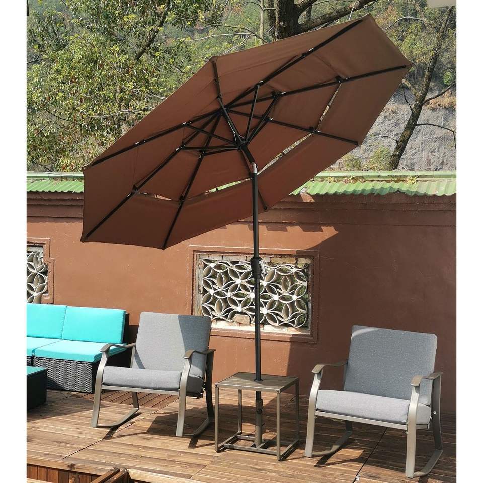 Ombrello da Patio esterno a 3 livelli da 9 piedi con inclinazione a manovella prese d'aria per giardino ponte sul retro piscina ombreggiante piscina