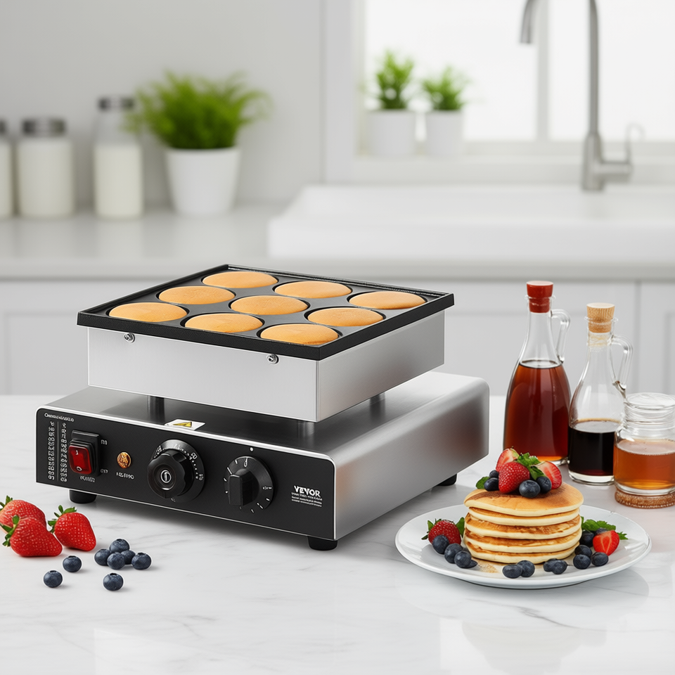 Macchina per Pancake Olandesi a 9 Fori 76mm, 850W, Antiaderente, Elettrica, Attrezzatura Commerciale per la Cottura