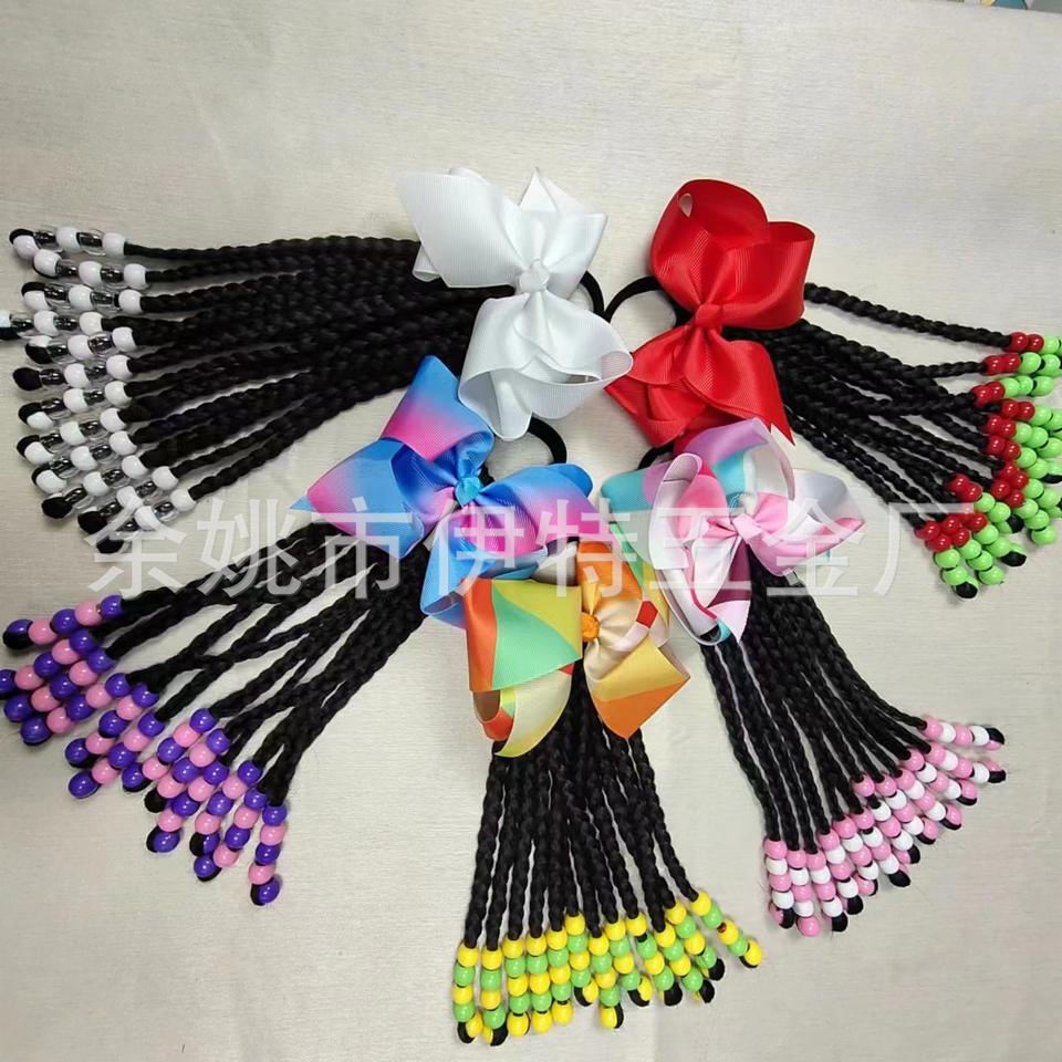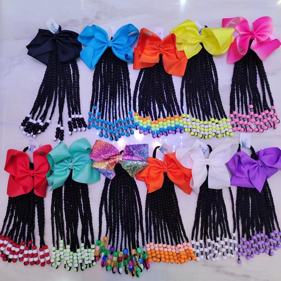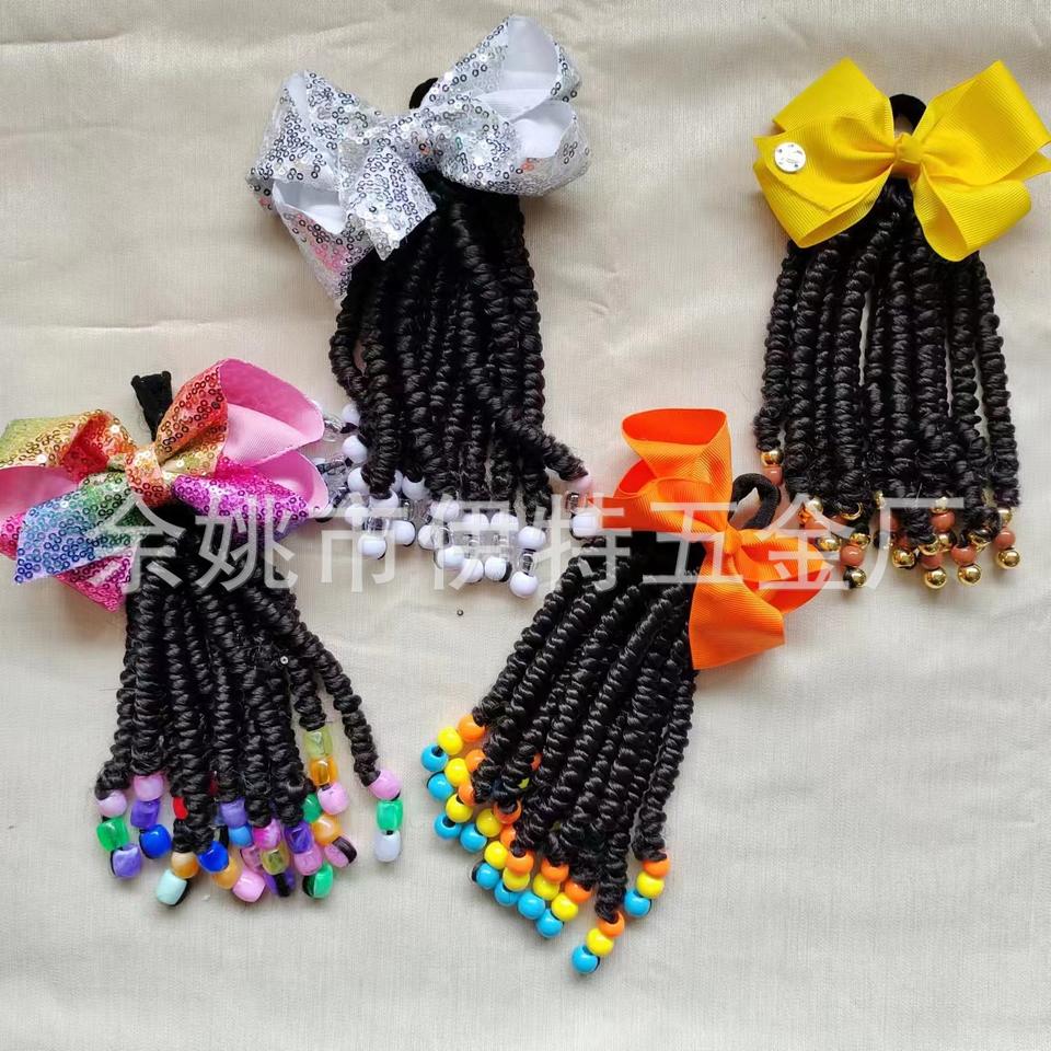 9 pollici 6 pollici per bambini treccia torsione capelli di perline coda di cavallo di estensione con perline arco in gomma per bambine e bambini