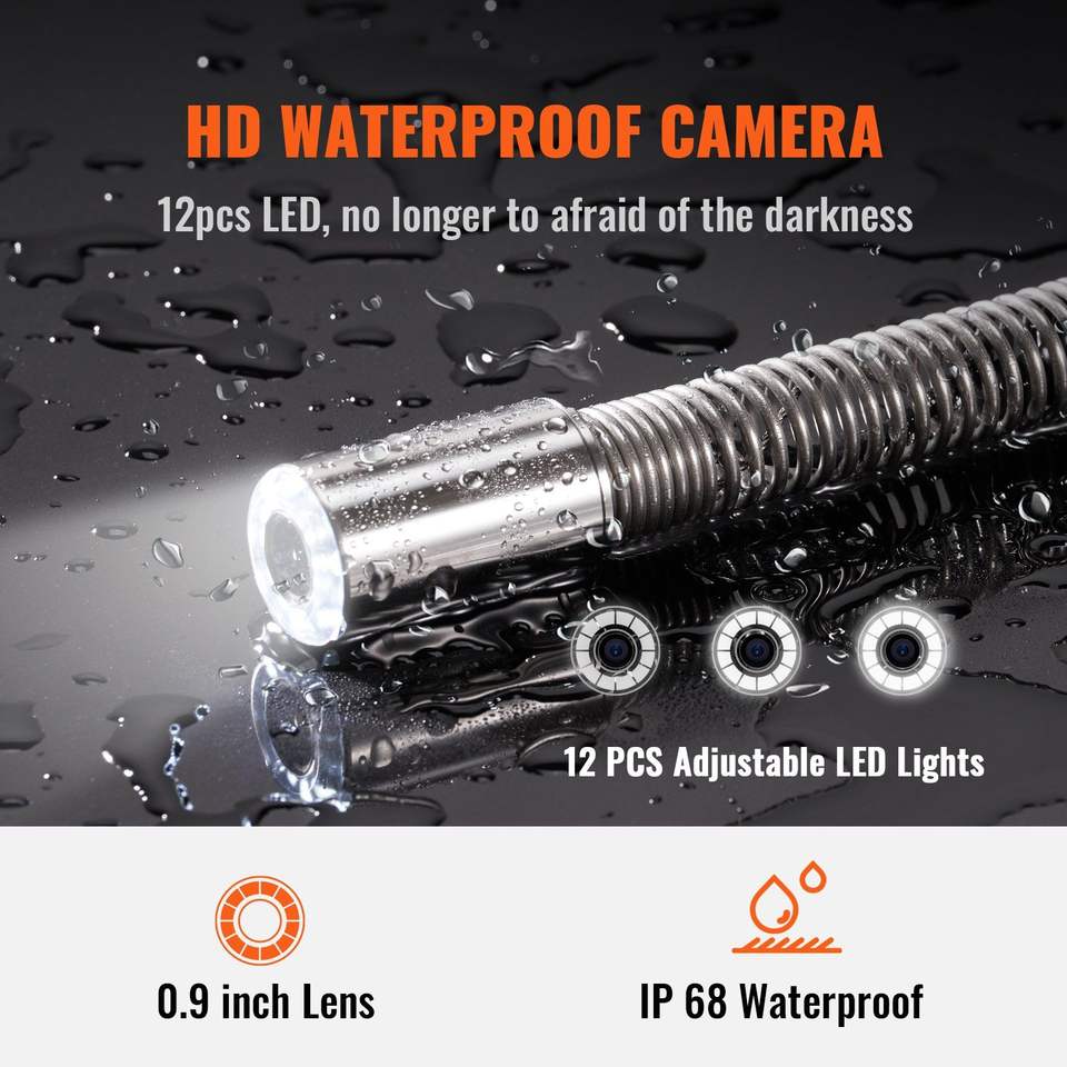 9-Inch 720p Screen Sewer Pipe Inspection Camera with 393 ft Range Water Quality Tester