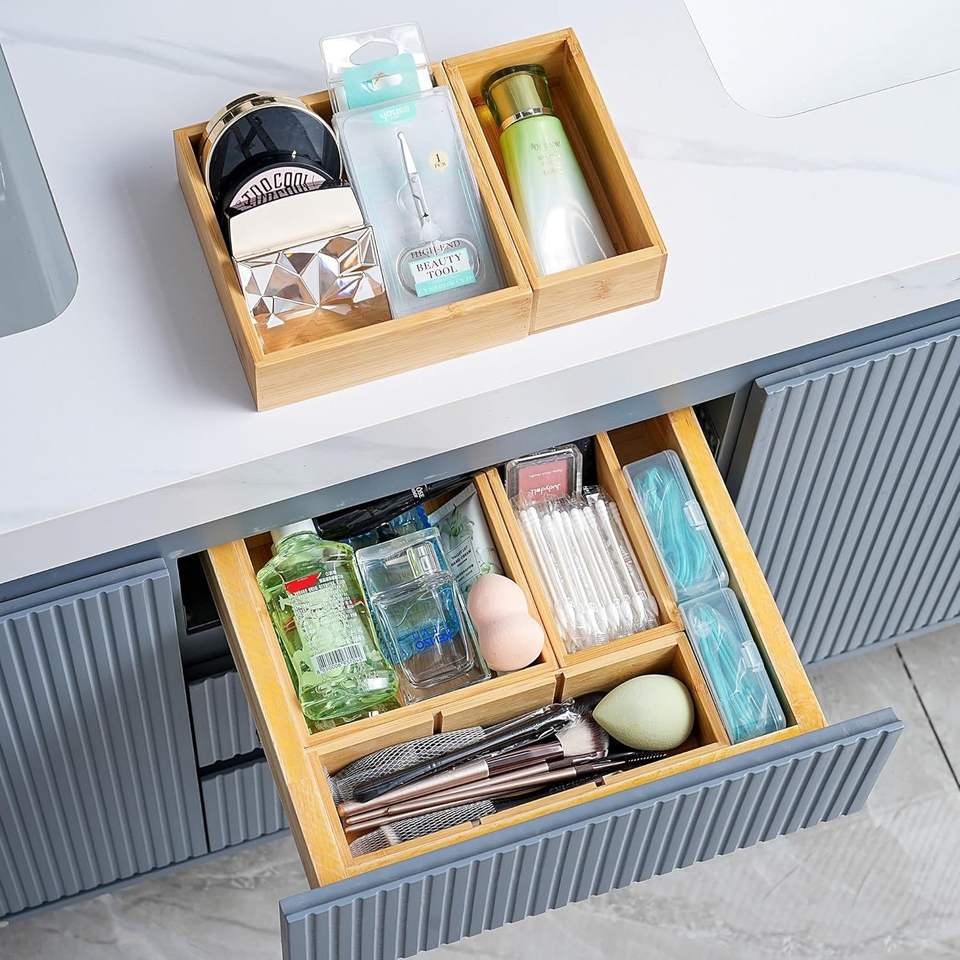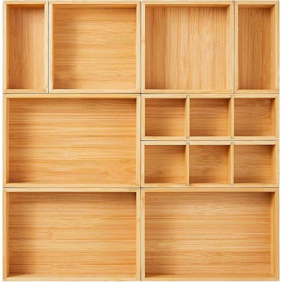 Set di 9 Organizzatori in Legno di Bambù per Cassetti, per Cucina, Trucchi, Scrivania, Contenitori per Tè, Posate e Utensili