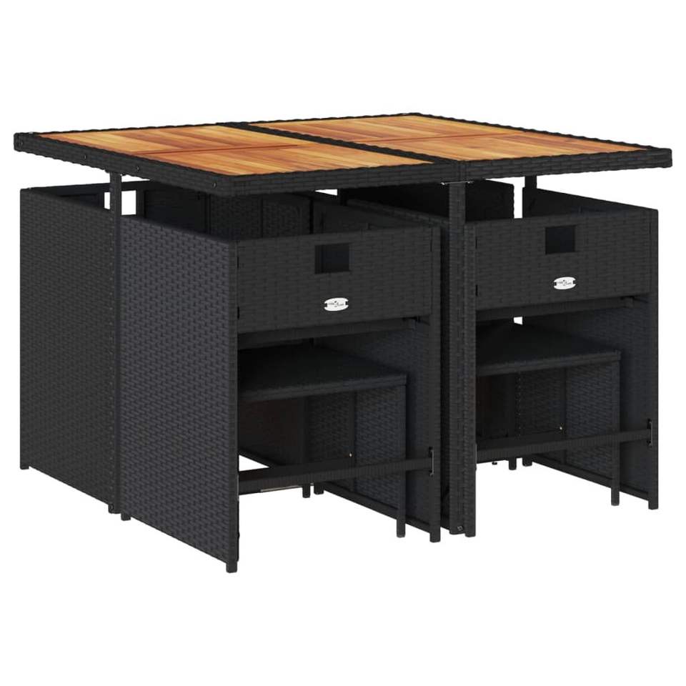 Set da pranzo con Patio in Poly Rattan nero 9 pezzi con cuscini Set da giardino