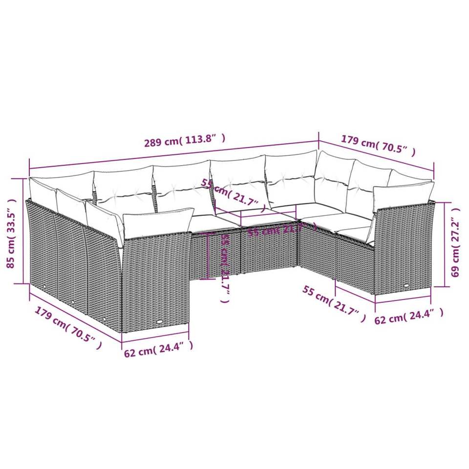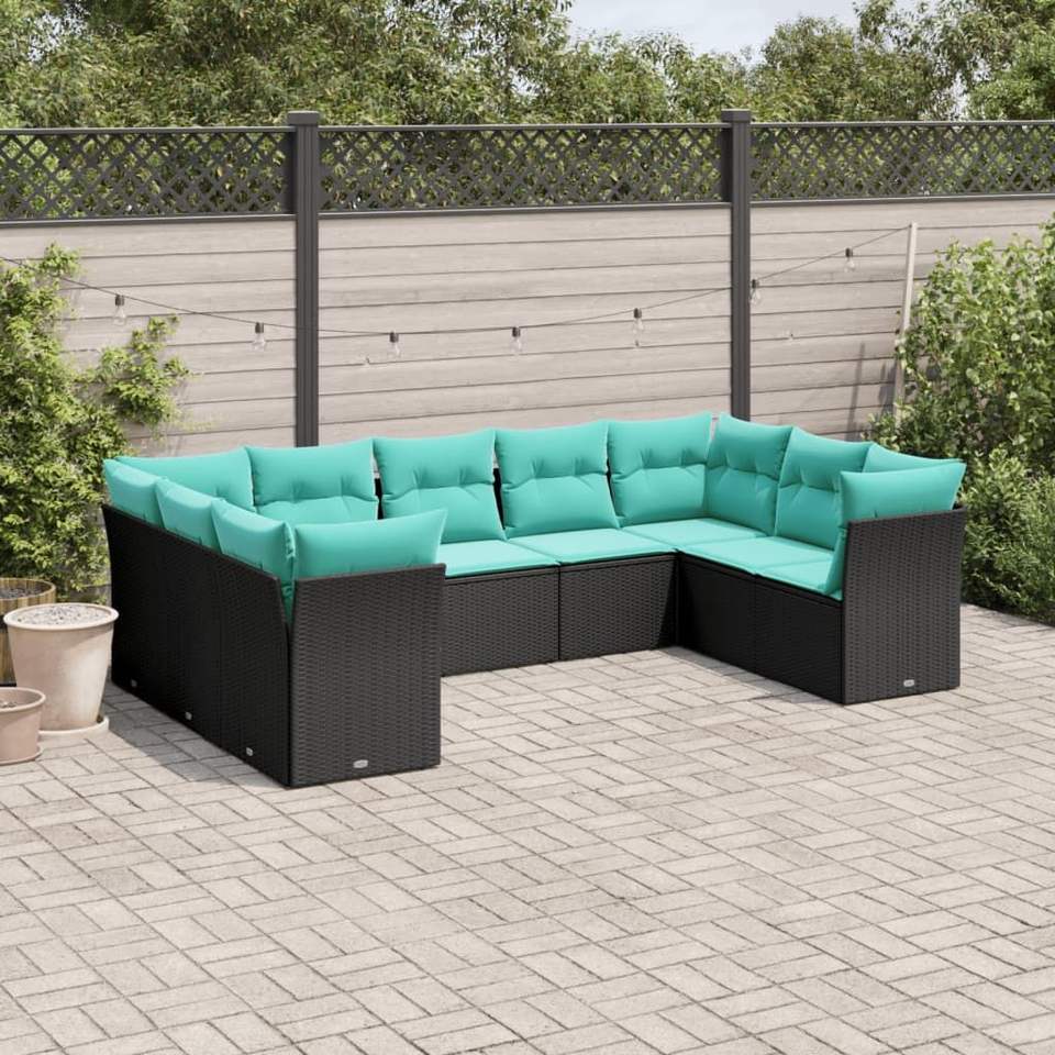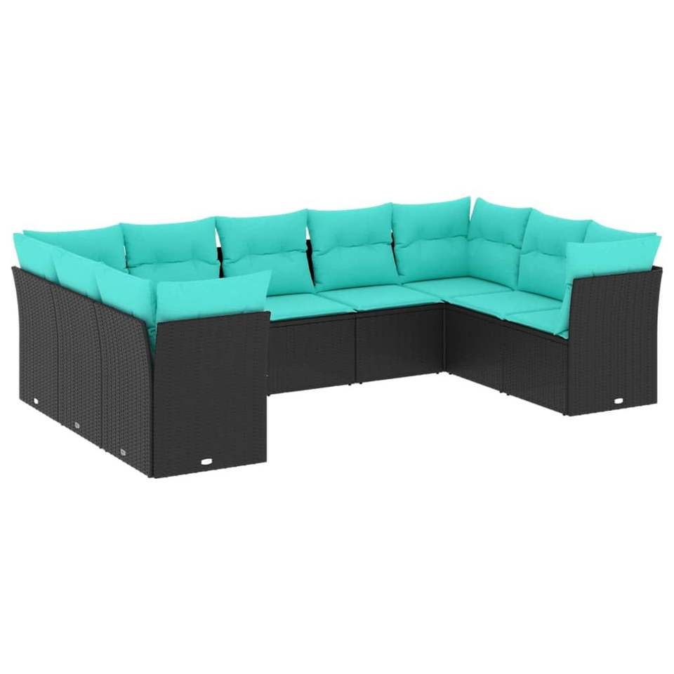 9 Piece Black Poly Rattan Patio Sofa Set with Cushions Garden Sets