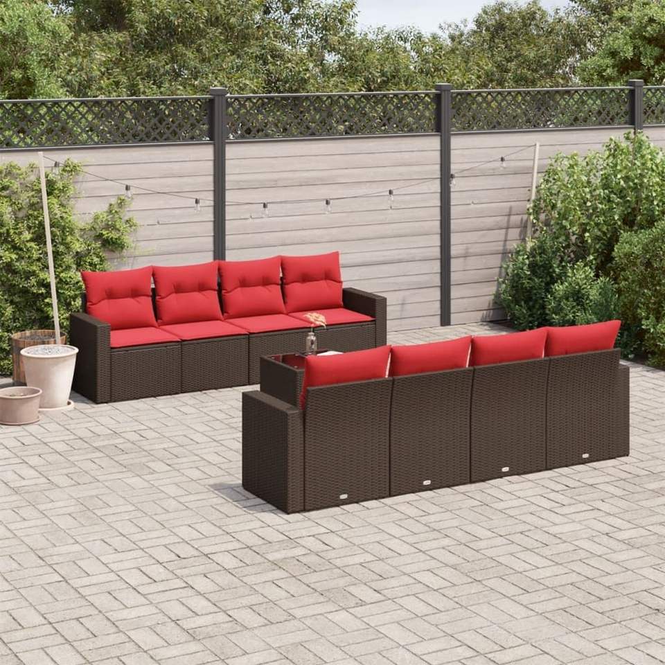 9 Piece Brown Poly Rattan Patio Sofa Set with Cushions Stylish Outdoor Furniture Collection