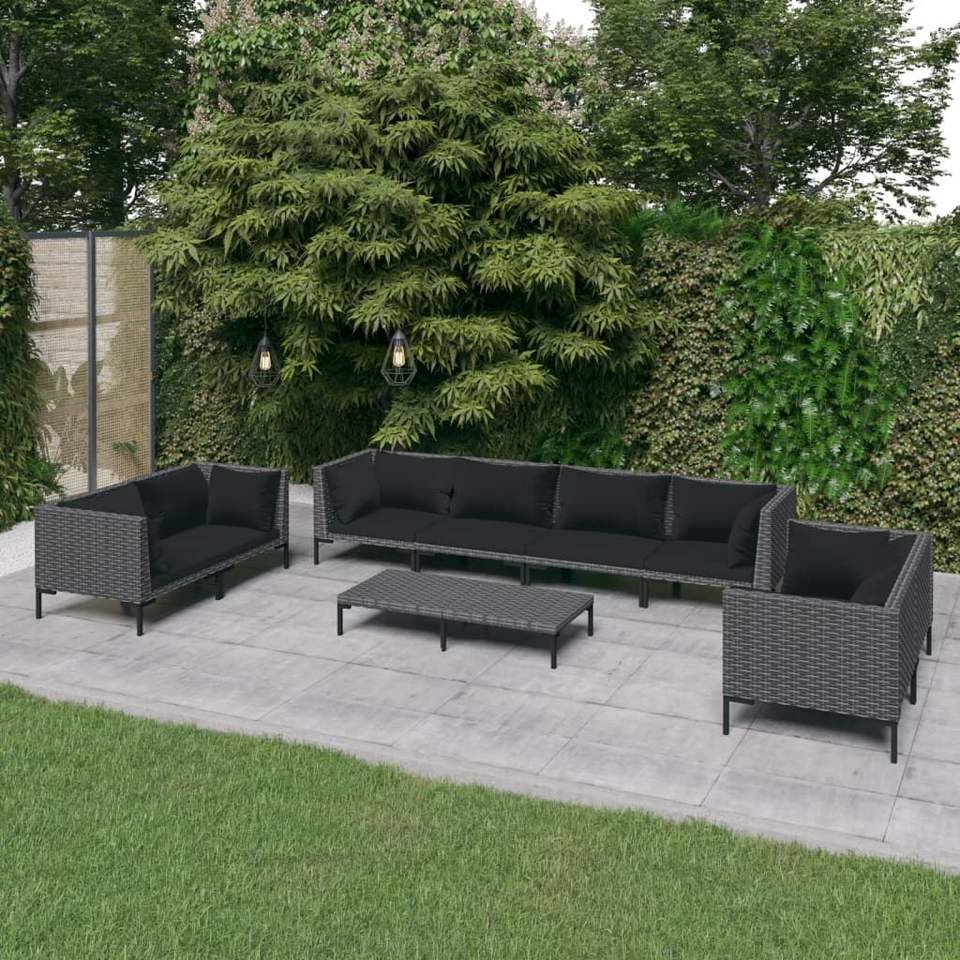 9 pezzi grigio scuro Poly Rattan Patio Set Lounge con cuscini mobili da esterno