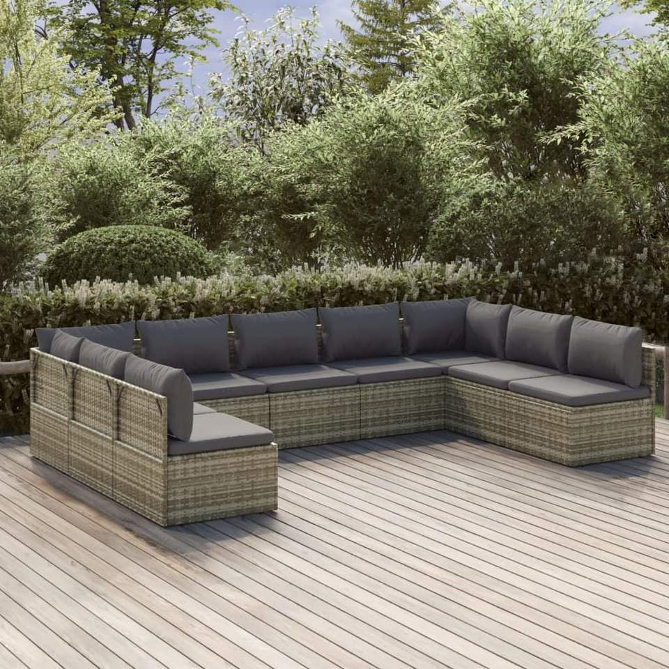 Set da salotto in Poly Rattan grigio 9 pezzi con cuscini Set da giardino