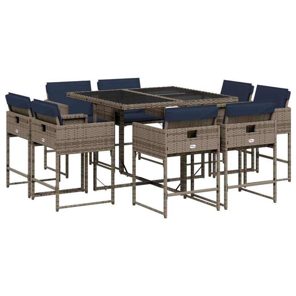 Set da pranzo da giardino in polyrattan grigio da 9 pezzi con cuscini, mobili da esterno in stile contemporaneo con struttura in acciaio, 8 posti