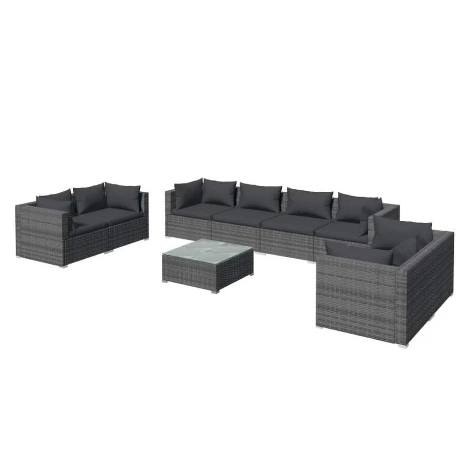 Set da salotto in Poly Rattan 9 pezzi con cuscini grigi Set da giardino