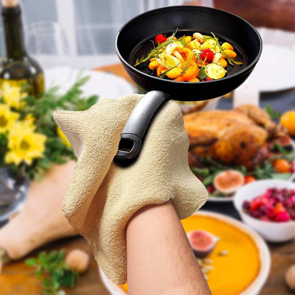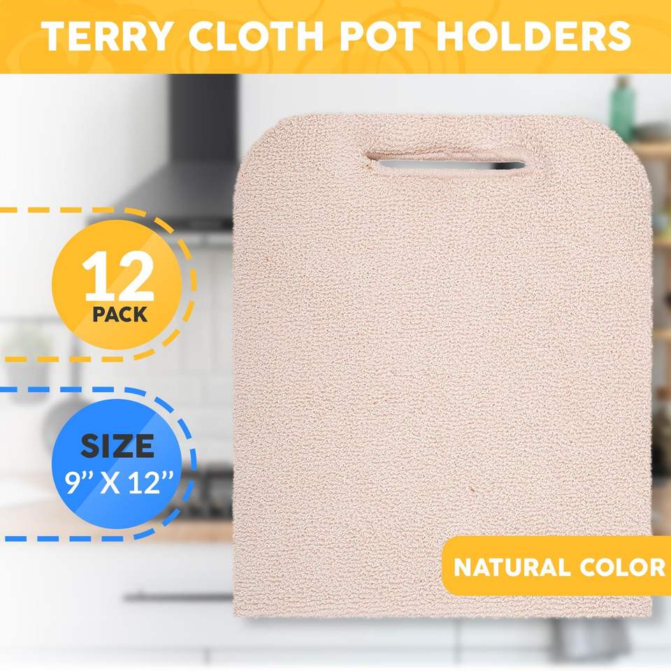 9 X 12 Inch Natural Color Terry Cloth Kitchen Pot Holders Pack 12 Washable Hot Pads Hand Hole Thick Cotton 460 F Cleaning Cloths