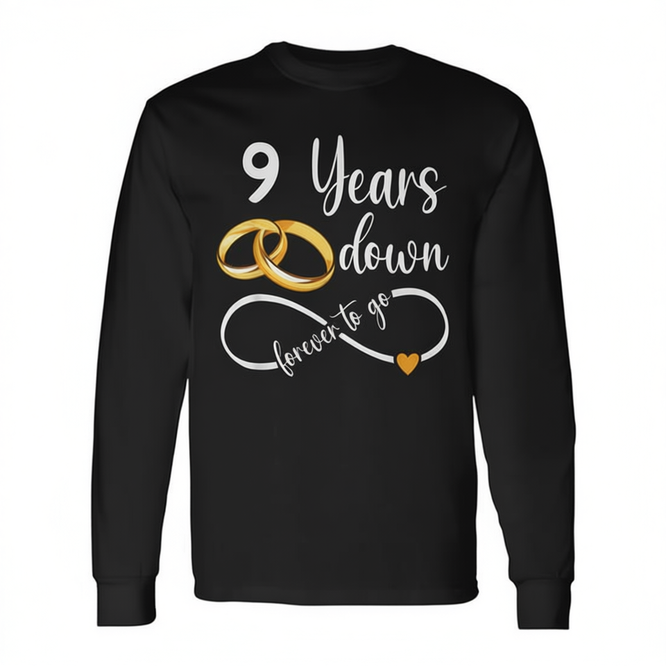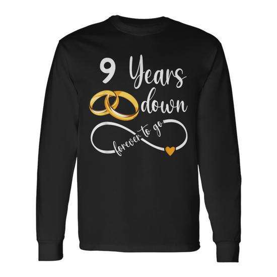 Maglietta a maniche lunghe per il 9° anniversario di matrimonio del coppia, 9 Years Down Forever To Go