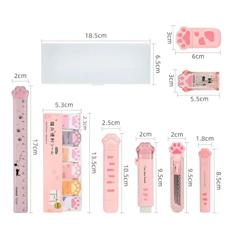 K-MIME Set di Cancelleria 9 in 1 con Blocchetti Memo Autoadesivi a Forma di Zampa di Gatto, Regalo Scolastico