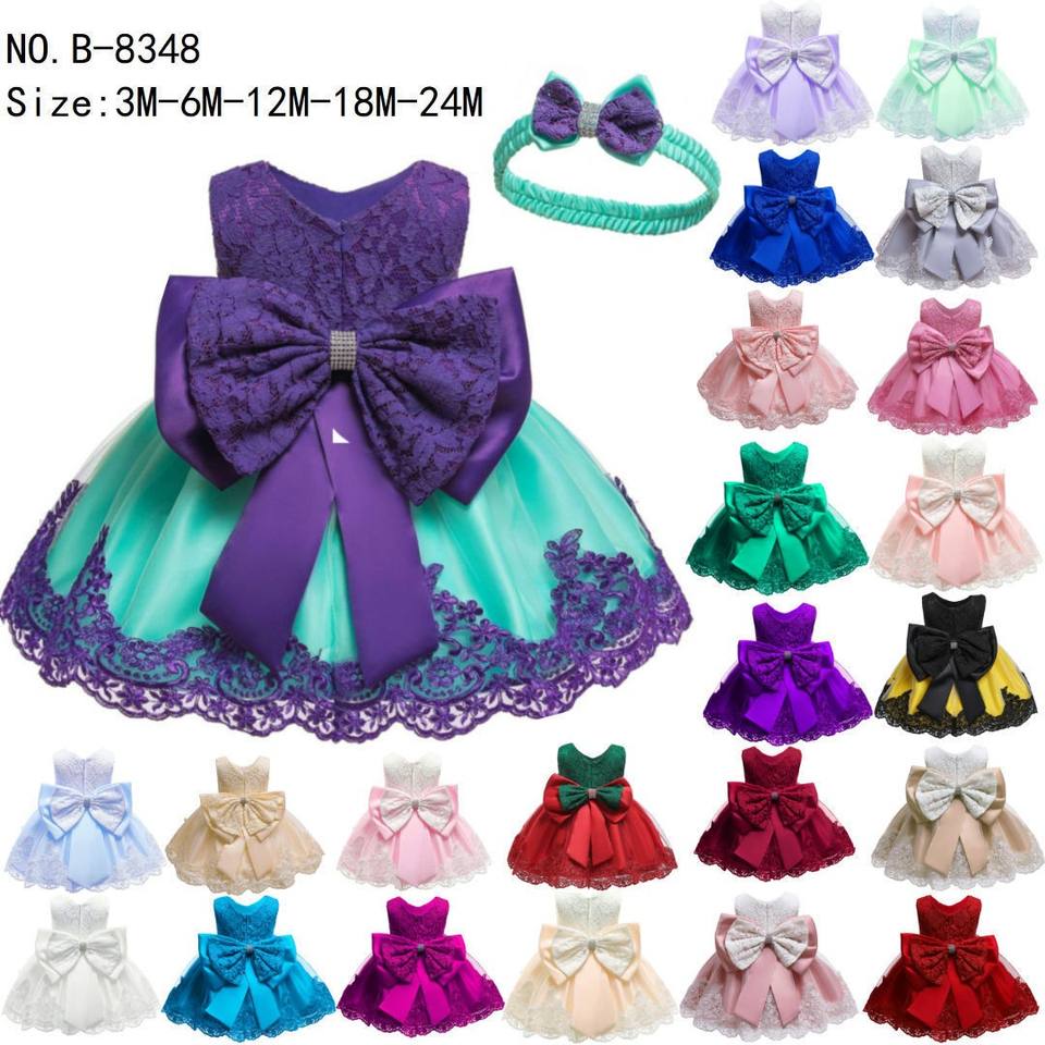 90-120cm 3M-24M Newborn Baby Girl Princess Dresses Lace Flower Bow Cute Birthday Party Dress