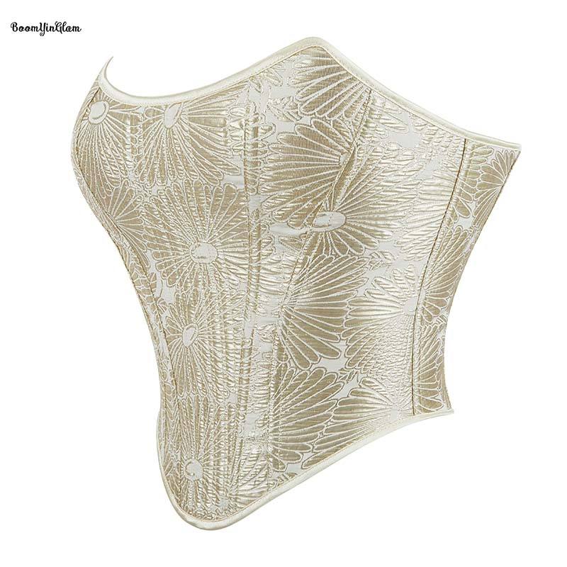 90% Polyester 10% Elastane Gold Corselet S-xxxl Vintage Cropped Top Sunflower Pattern Floral Embroidered Corset With Zipper