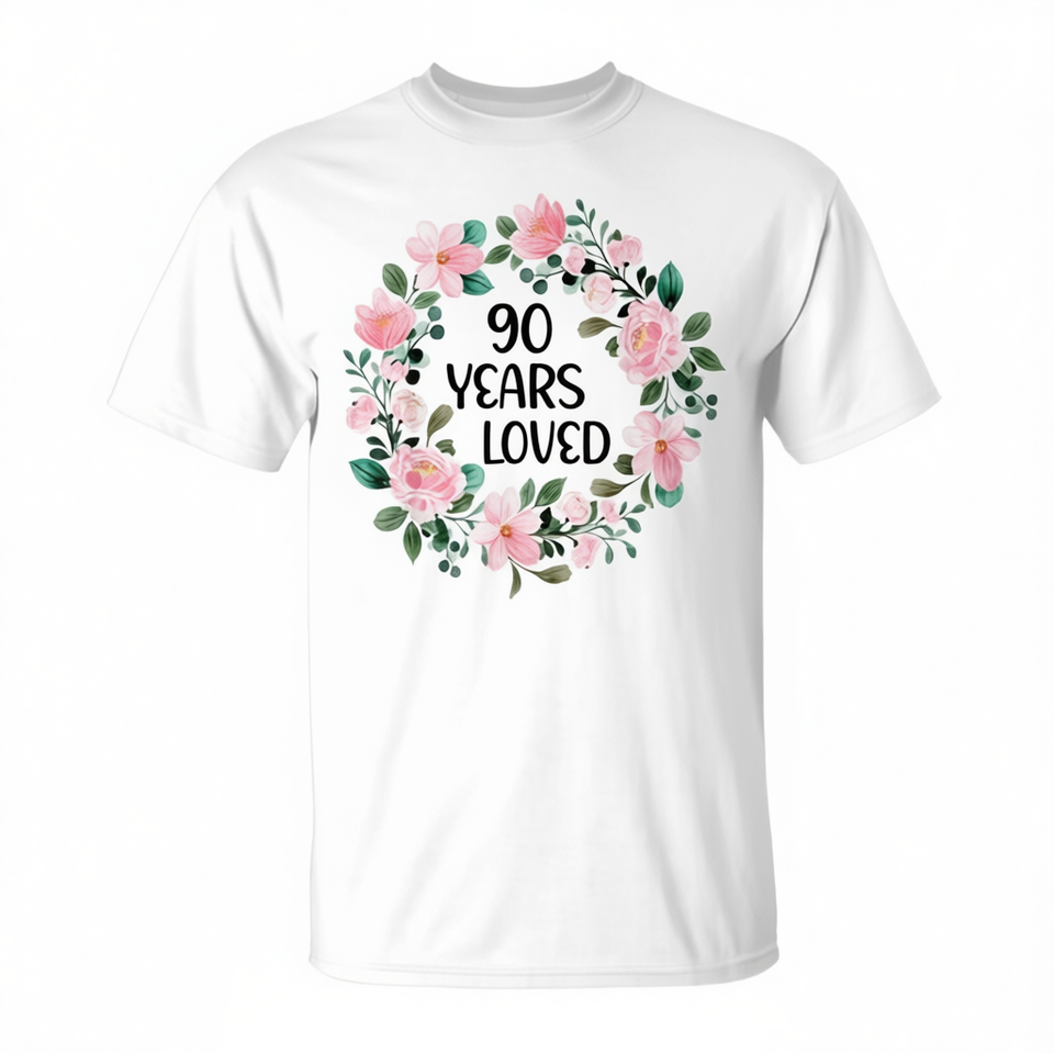 Maglietta per il 90° anniversario con design floreale, regalo per il 90° anniversario per donne e uomini