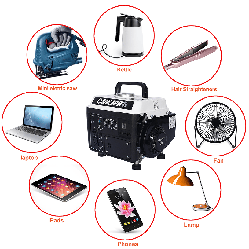 Generatore Portatile Ibrido Gas/Olio da 900W Conforme EPA, Ultra-Silenzioso a Conversione di Frequenza con Serbatoio Conforme da 4.2L 71cc a 4 Tempi