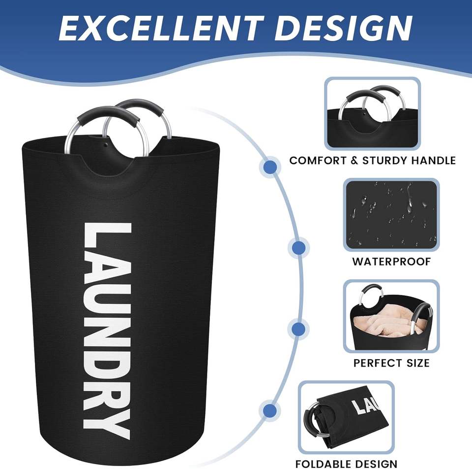 Cesto Portabiancheria Grande da 90L, Autoportante, Impermeabile, Pieghevole, Alto, per Dormitorio e Casa