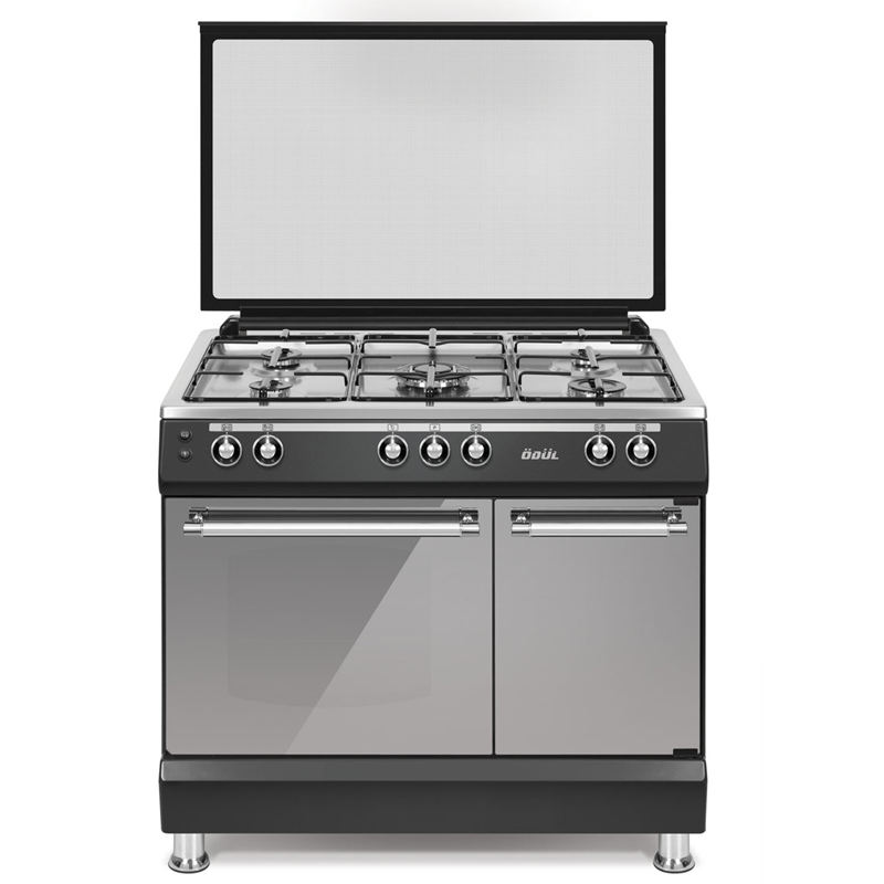 90cm Avangard 304 Quality Inox Top Table 5 Gas Burners (Middle WOK) Black Body Gas Bottle Compartment Free Standing Oven