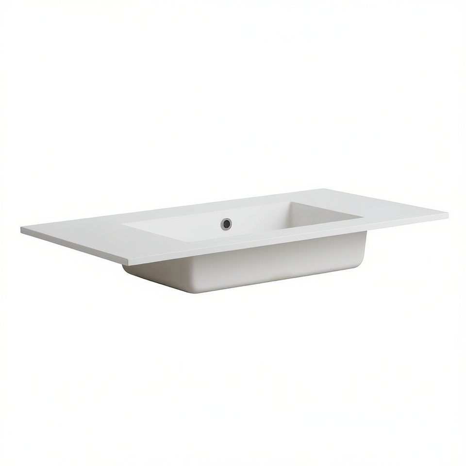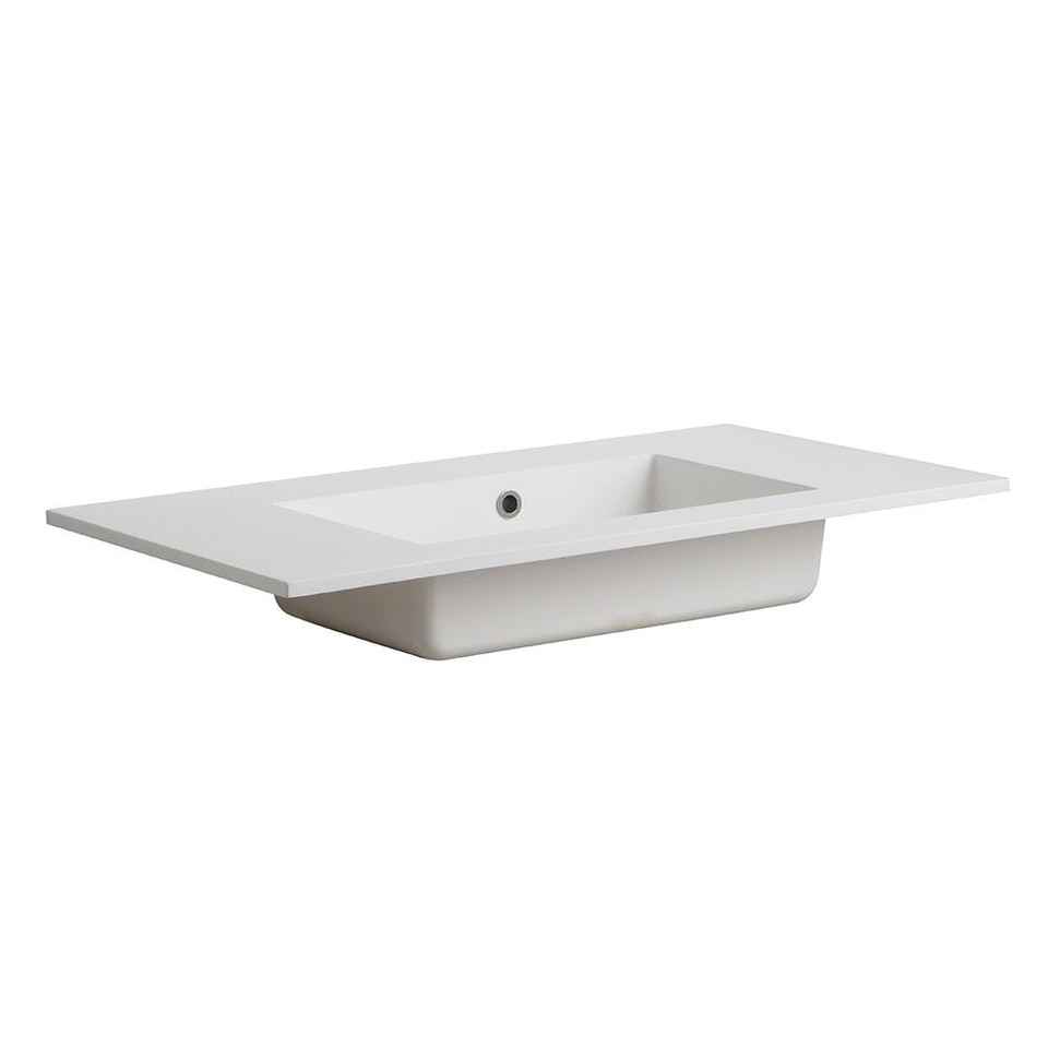 Lavabo KORICINI 90cm in Ceramica Opaca Bianca, Design Moderno Facile da Pulire, con Vasca Centrale Senza Foro per Rubinetto