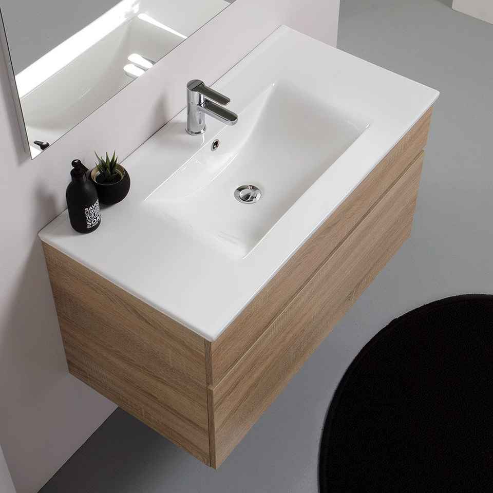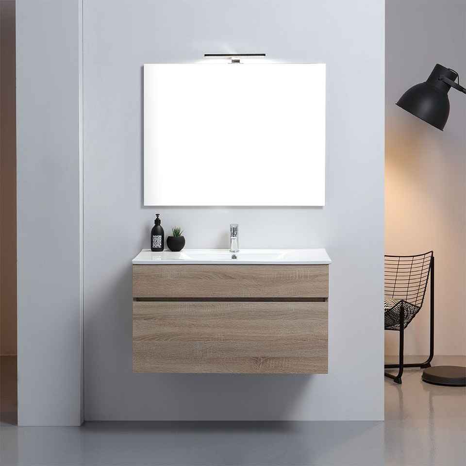 Mobile Bagno Sospeso a Due Pezzi da 90 cm in Rovere Naturale di Shanghai, Elegante Set Bagno Italiano