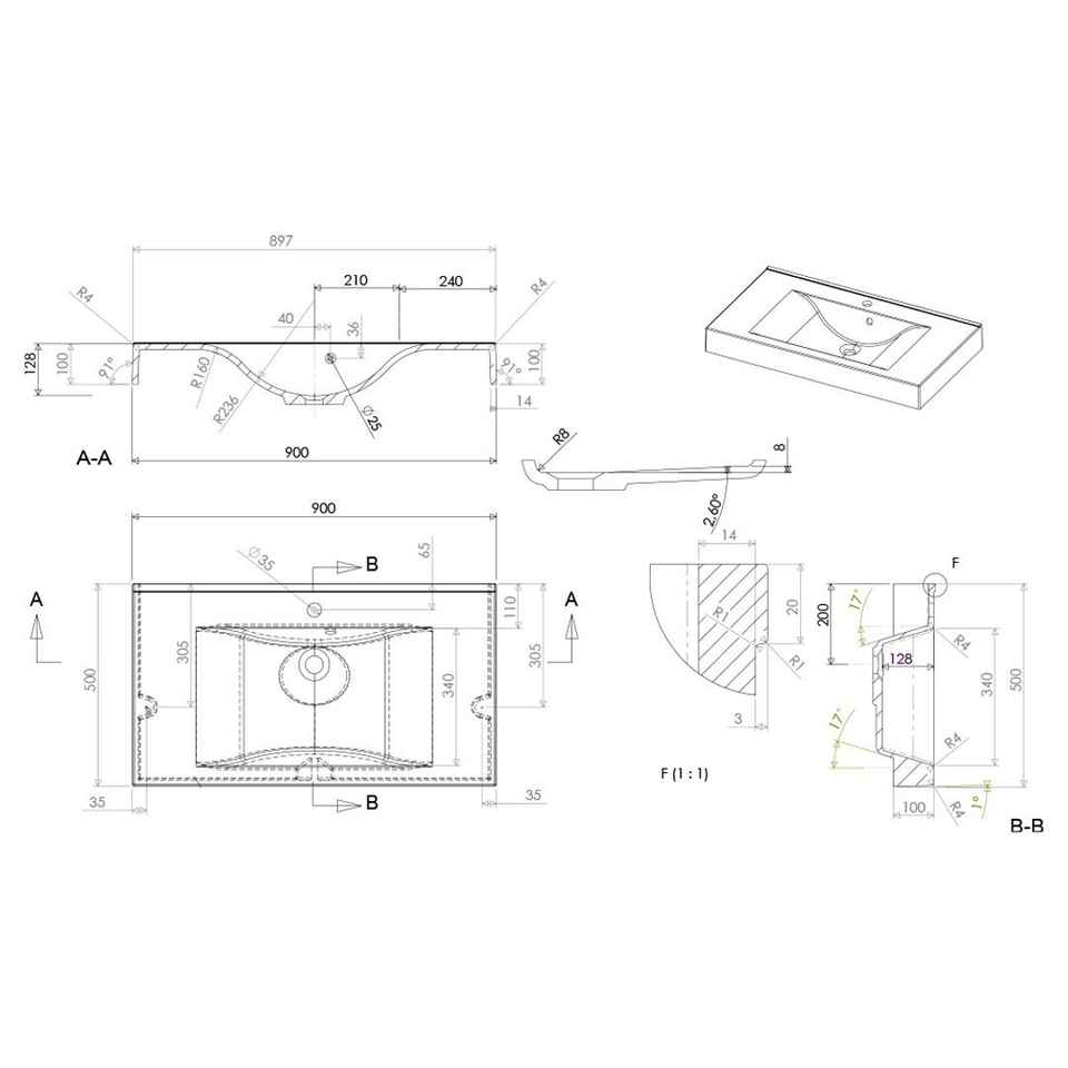 Lavabo in marmo ricomposto dal design moderno da 90 cm