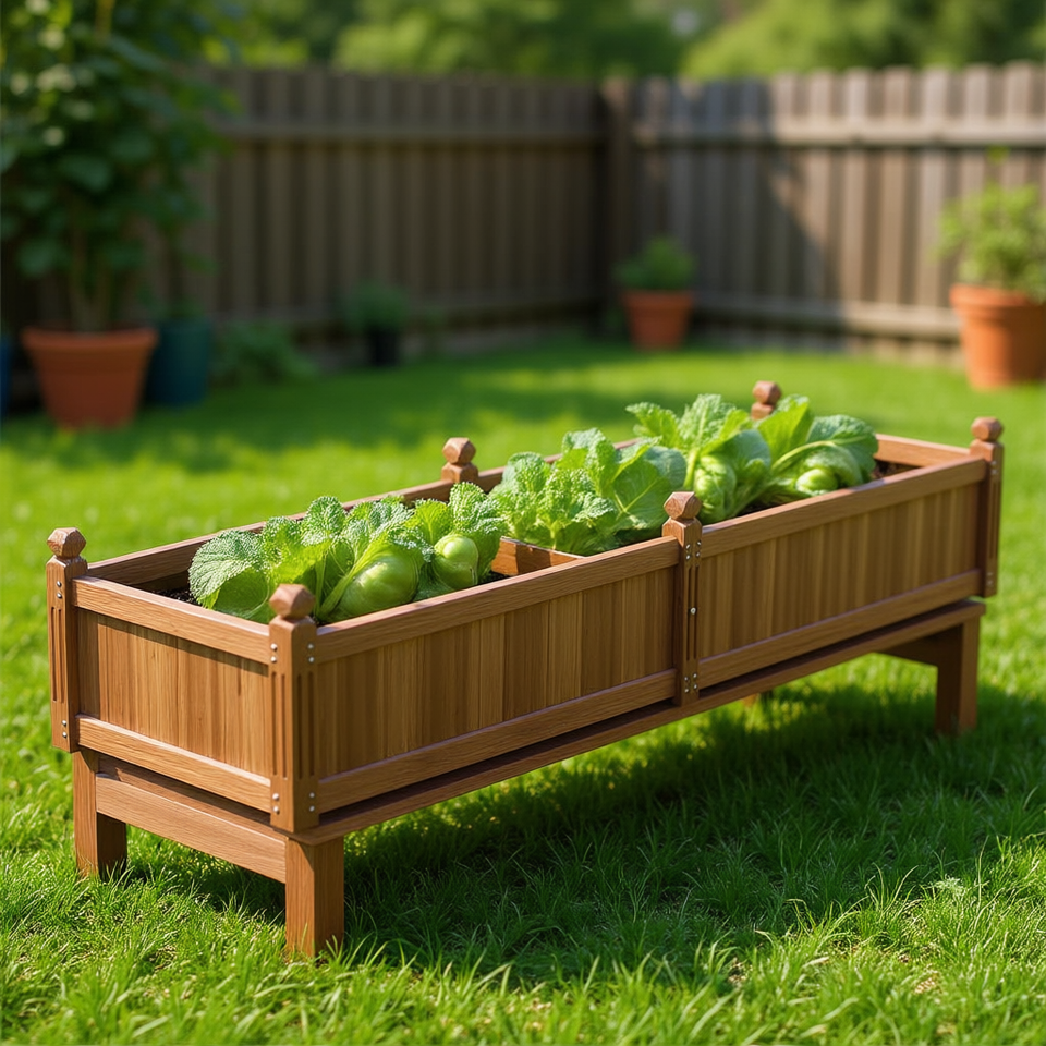 Fioriera Sospesa in Legno 91 X 24 X 16 Pollici, Rettangolare Divisibile per Orticoltura, Colore Marrone
