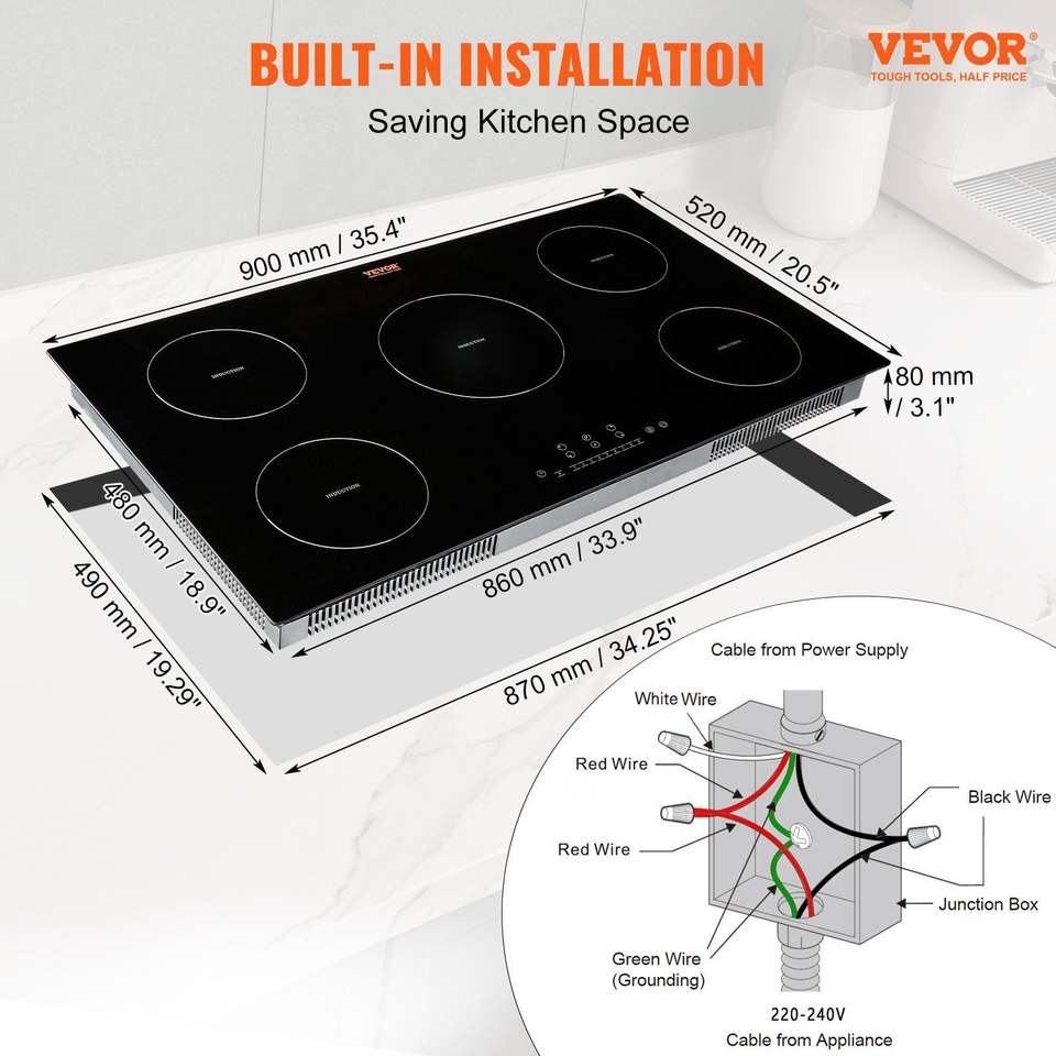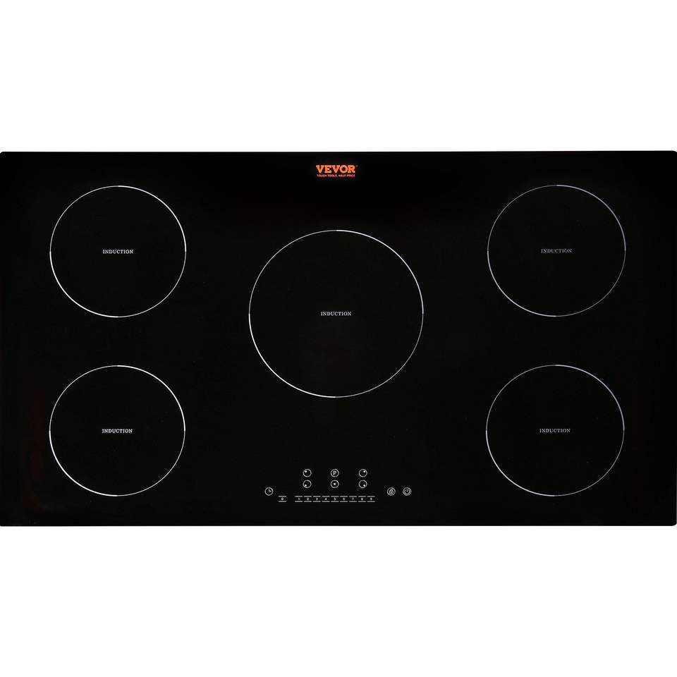 9200W 5-Burner 36'' Induction Cooktop LED Touch Screen 9 Heating Level Multifunctional Burner Over-Temperature Protection Child