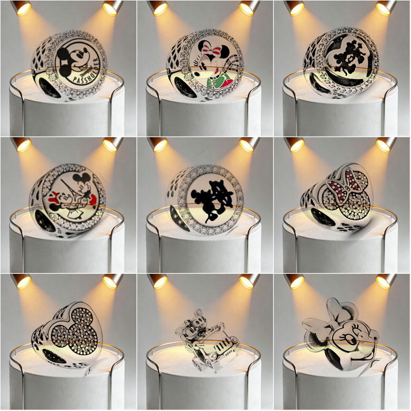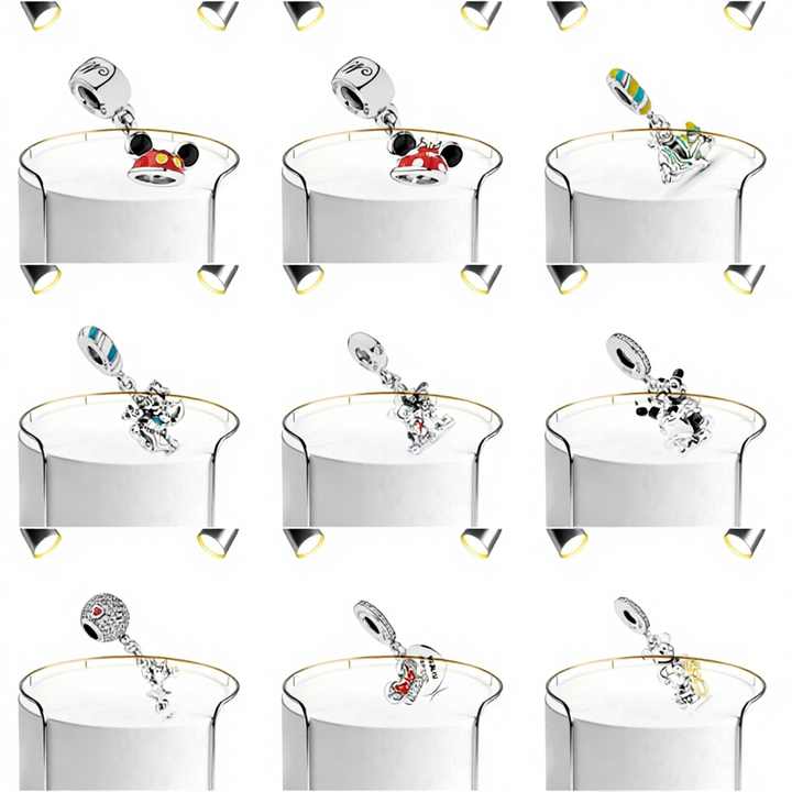 Bracciale in Argento Puro 925 Serie Topolino Minnie Paperino con Ciondoli a Perline Fai da Te