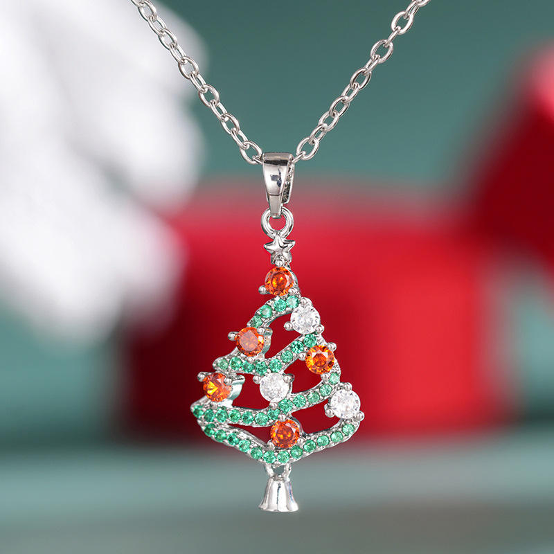 Collana con ciondolo albero di Natale in argento 925 con strass di cristallo per regalo, catena a maglia box in stile carino unisex