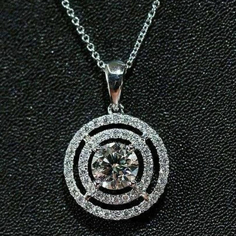 Collana con Pendente in Cristallo Argento 925 Placcato Rodio Design Geometrico Incastonatura a Griffe Uso Quotidiano Unisex Catena a Serpente