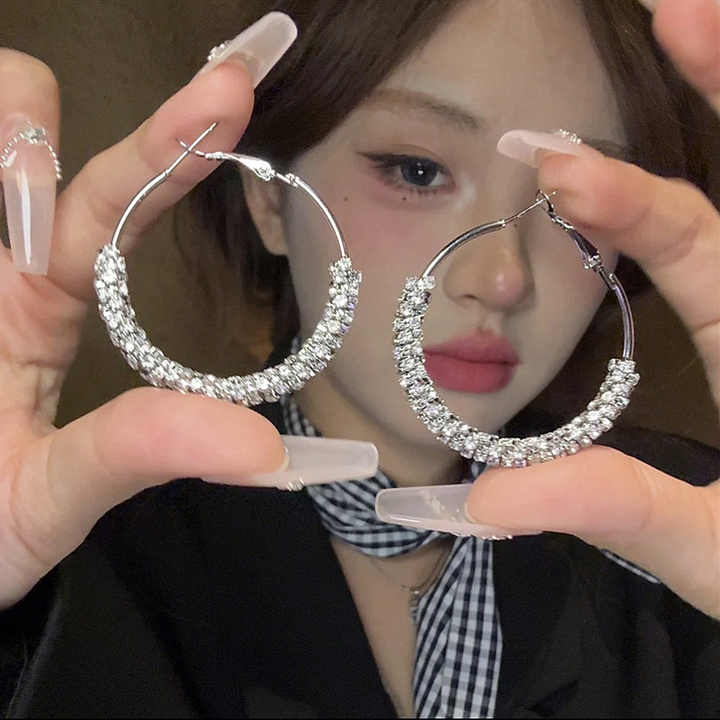 Orecchini a Cerchio Grandi in Argento 925 da Donna, Lusso e Alta Gamma, Moda Quotidiana con Diamanti Scintillanti