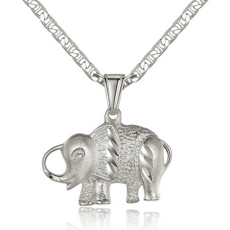 Collana con Ciondolo Elefante in Argento 925, Catena a Maglie, Stile Classico Unisex per Uso Quotidiano, Finitura in Oro Bianco