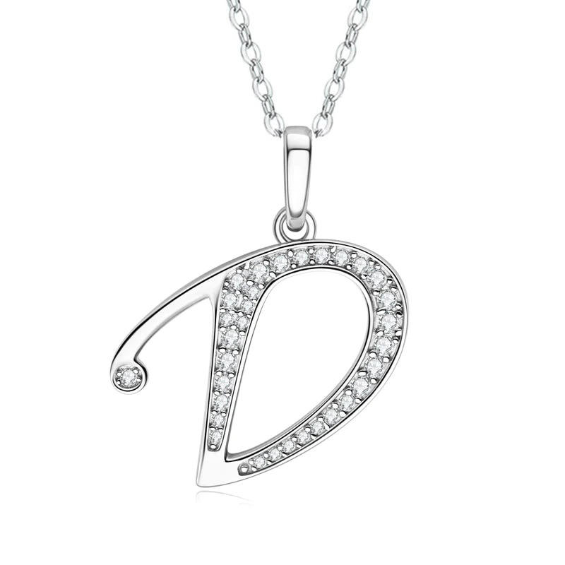 Collana con Ciondolo Lettera D in Argento 925 con Cristalli e Strass Incastonati, Stile Classico Unisex per Uso Quotidiano, Catena a Maglia