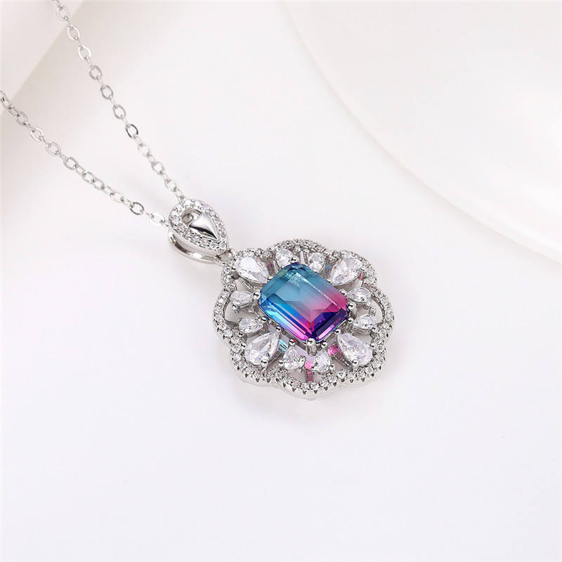 925 Silver Pendant Necklace With Emerald Cut Crystal Rhinestone Flower Design For Women Wedding Luxury Jewelry Box Chain