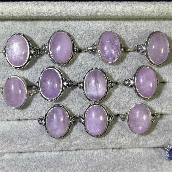 Anelli in Argento 925 di Alta Qualità con Kunzite, Anelli con Gemme, Gioielli in Quarzo Rosa, Artigianato in Cristallo Naturale, Regolabili, per Regalo Quotidiano
