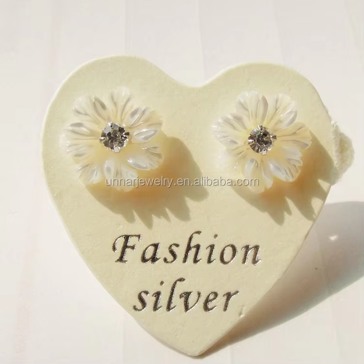 925 Stamped Sterling Silver Stud Earrings White Mother of Pearl Flower Clay Pave Rhinestone Set Crystal Stone