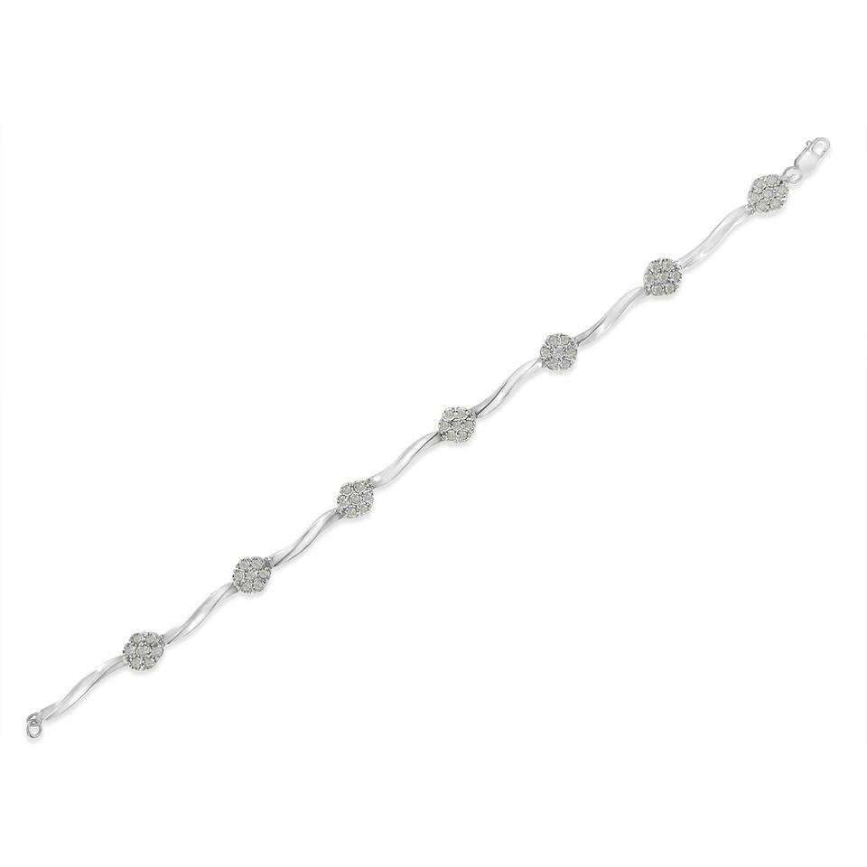 Bracciale Tennis in Argento Sterling 925 con Cluster di Diamanti da 1.0 Carati TW