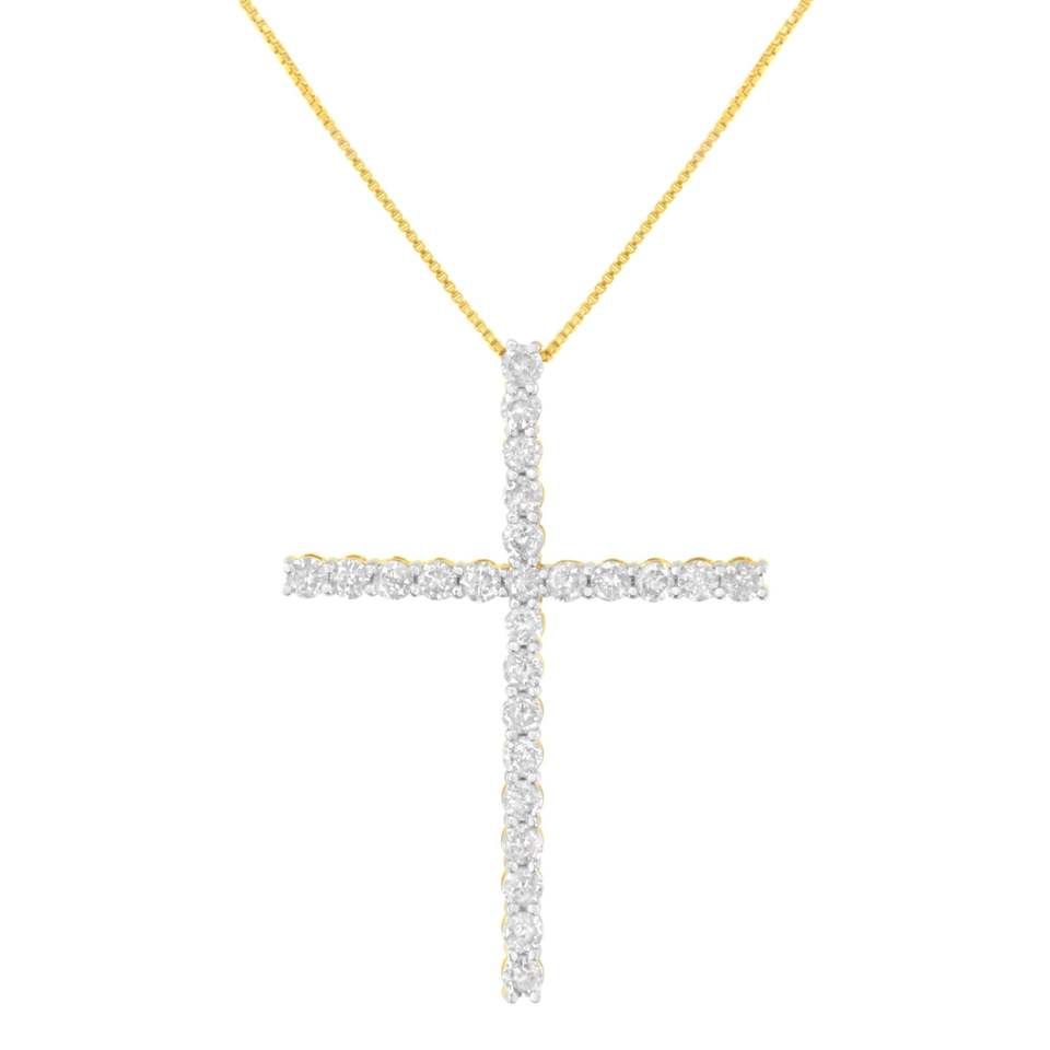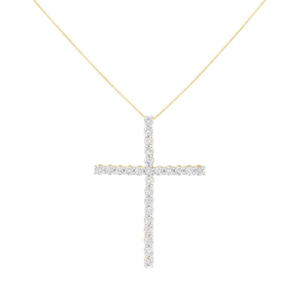 Collana con Pendente a Croce in Argento Sterling 925 da 3,8 cm con Diamanti da 3,0 carati totali, Colore J-K, Purezza I2-I3, Catena a Maglia Box - Ciondolo Raffinato