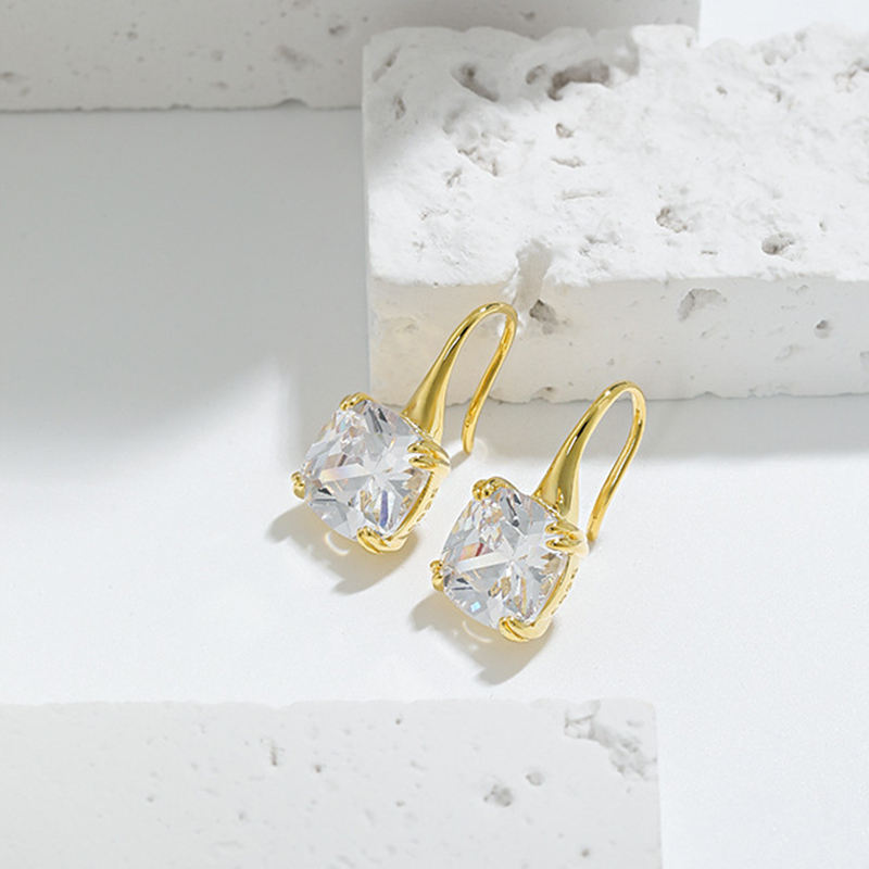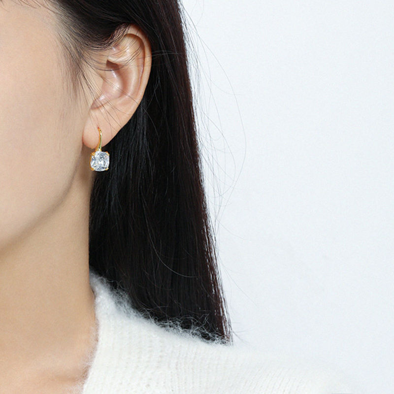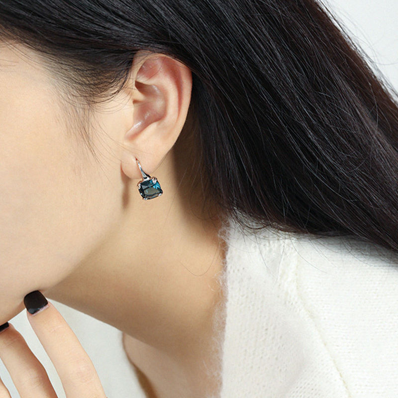 925 Sterling Silver 2026 Womens Fashion Designer Jewelry Delicate White Blue Zircon Square French Hook Earrings