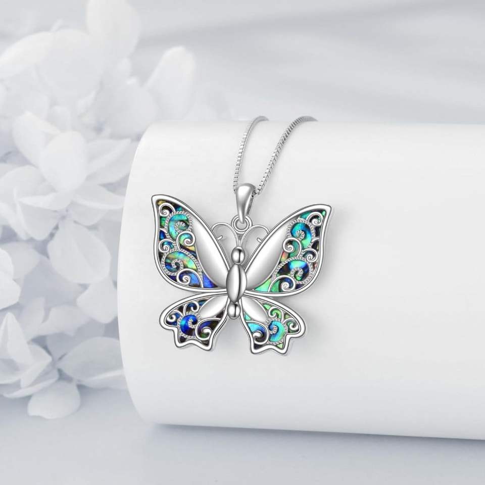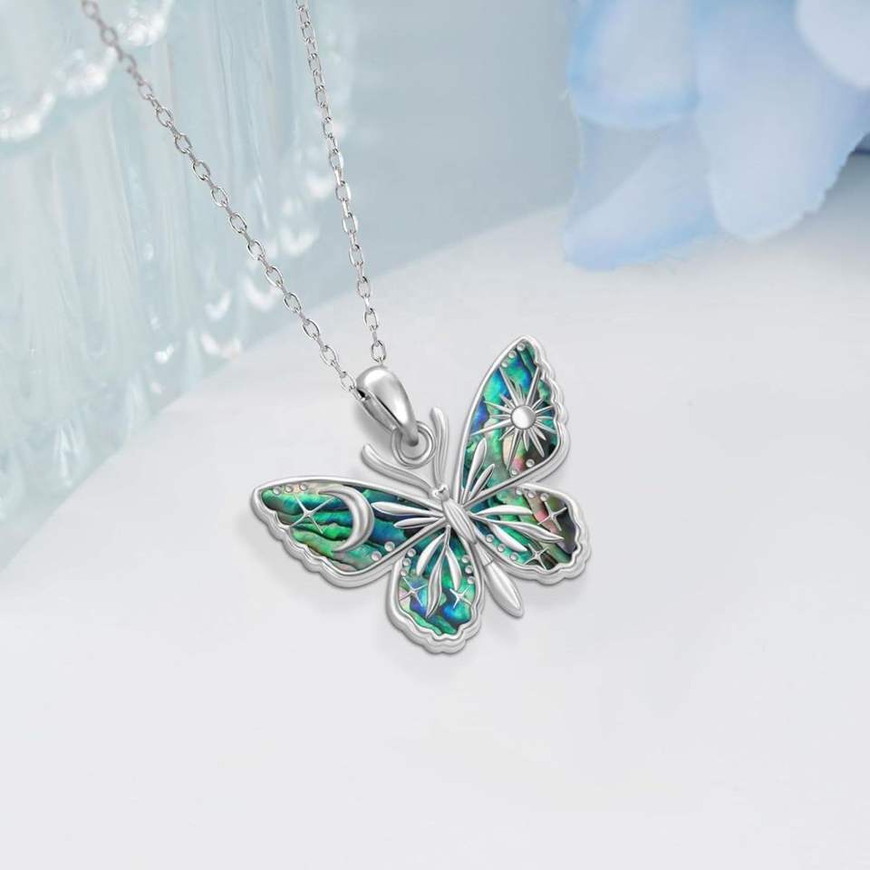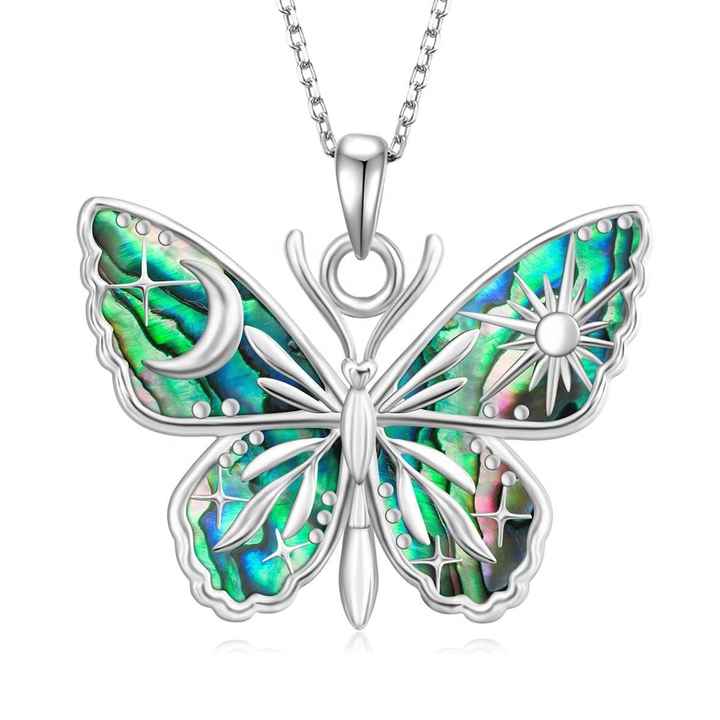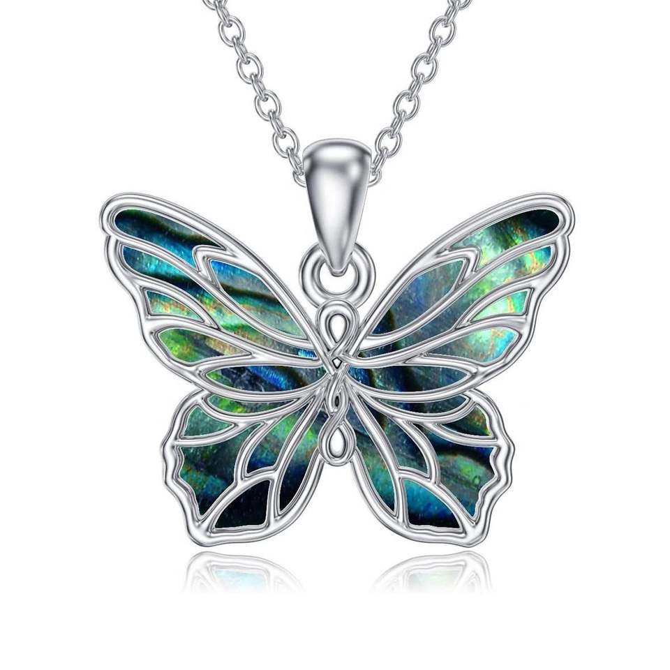 925 in argento Sterling Abalone conchiglia farfalla collana ciondolo delinty Vintage farfalla gioielli Abalone fogli per la vendita
