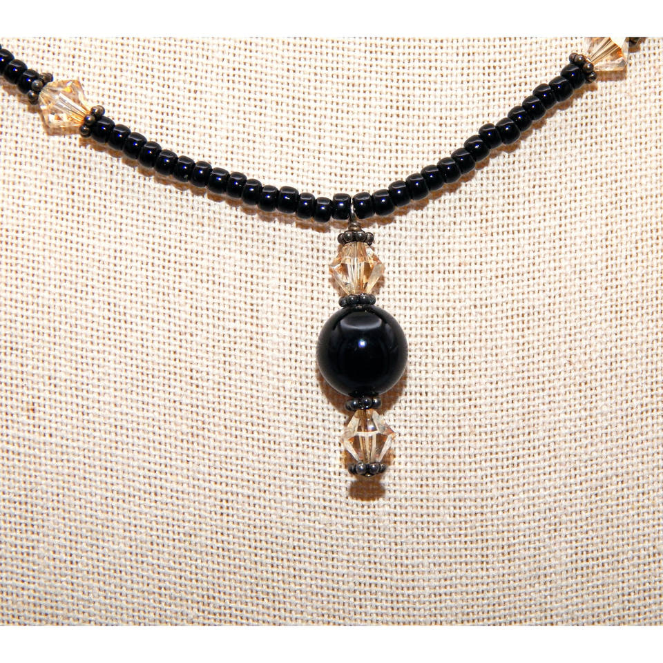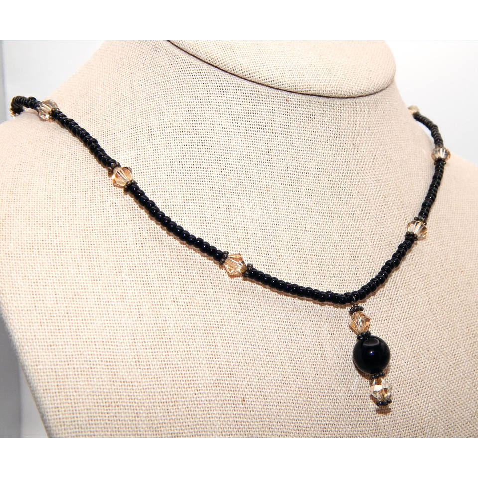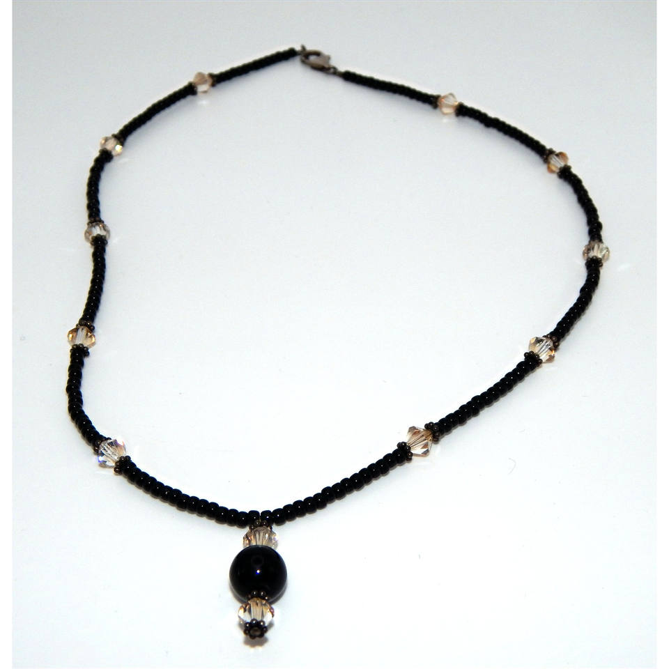 . 925 argento Sterling onice nero e cristallo bella collana di perline