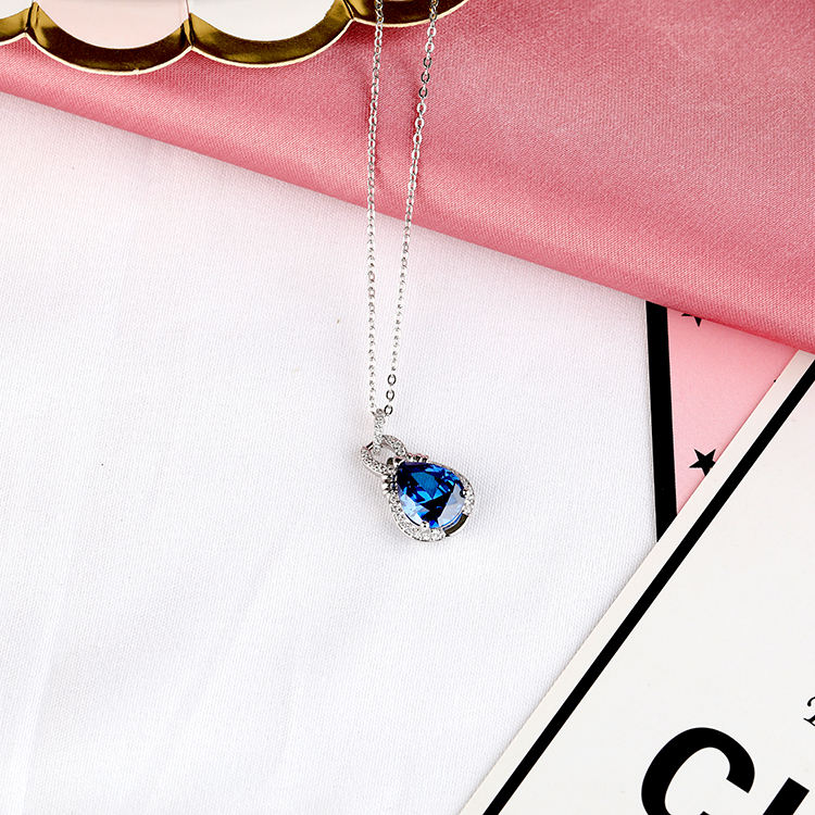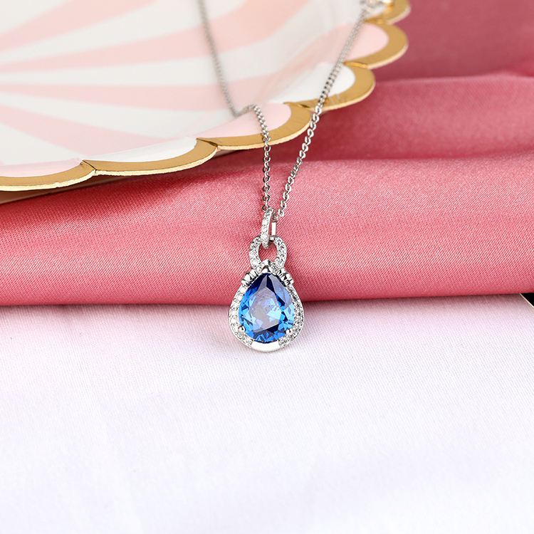 Collana con Pendente a Goccia in Argento Sterling 925 con Zircone Blu, Gioiello Elegante per Outfit da Cerimonia