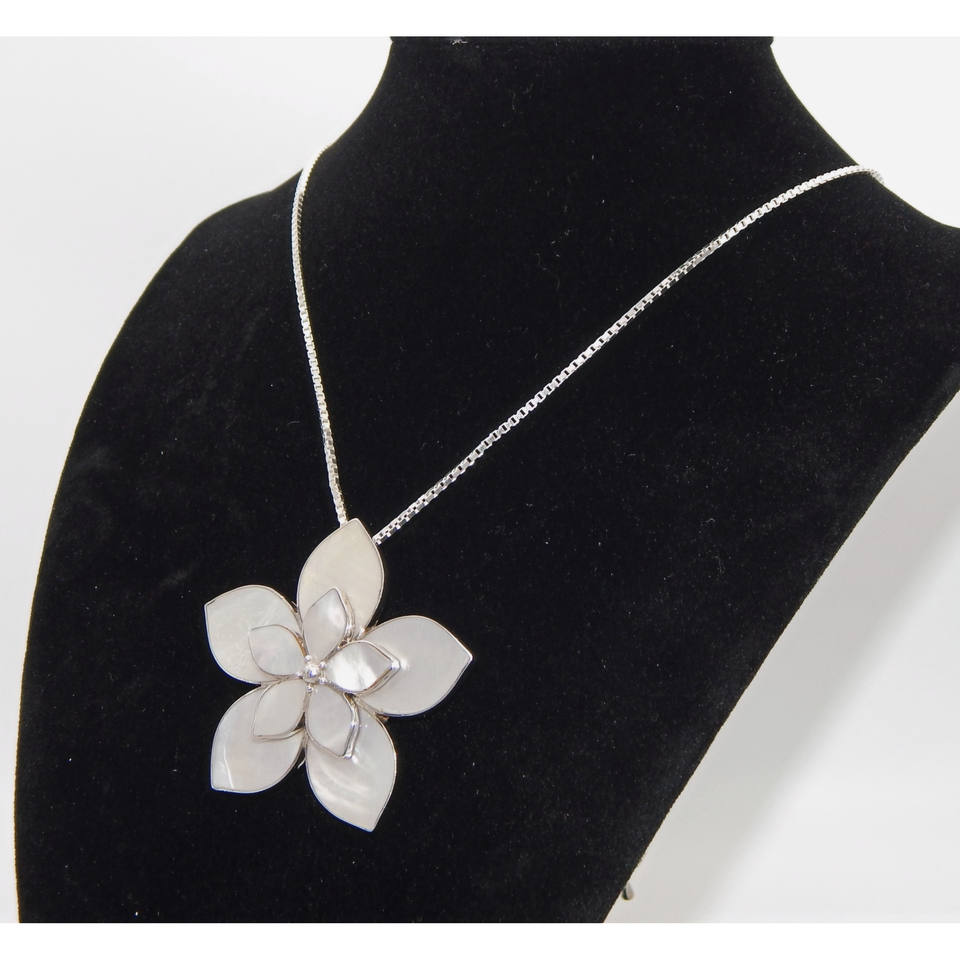 Catena scatola in argento Sterling 925 e collana pendente fiore madreperla